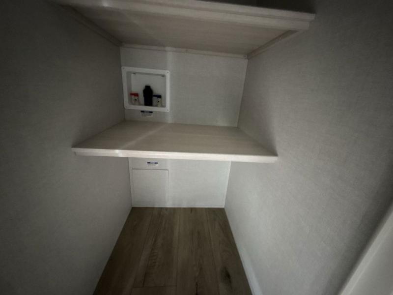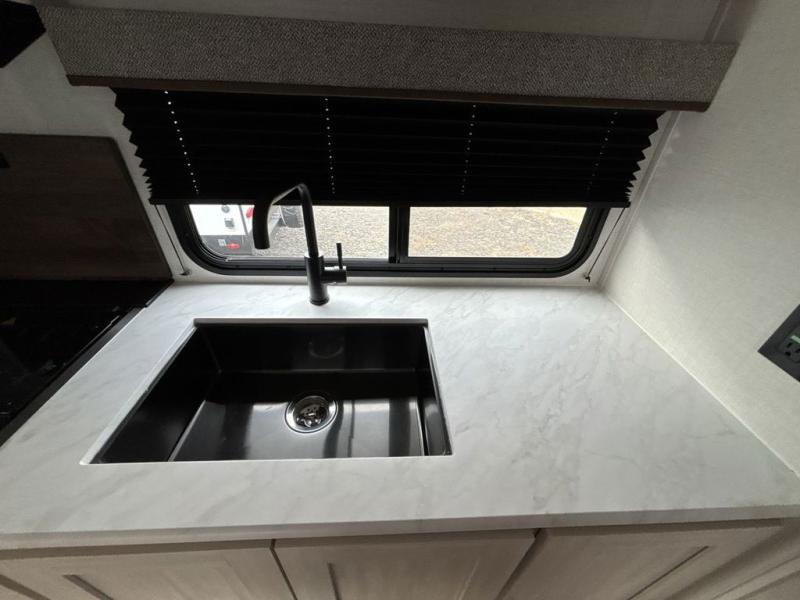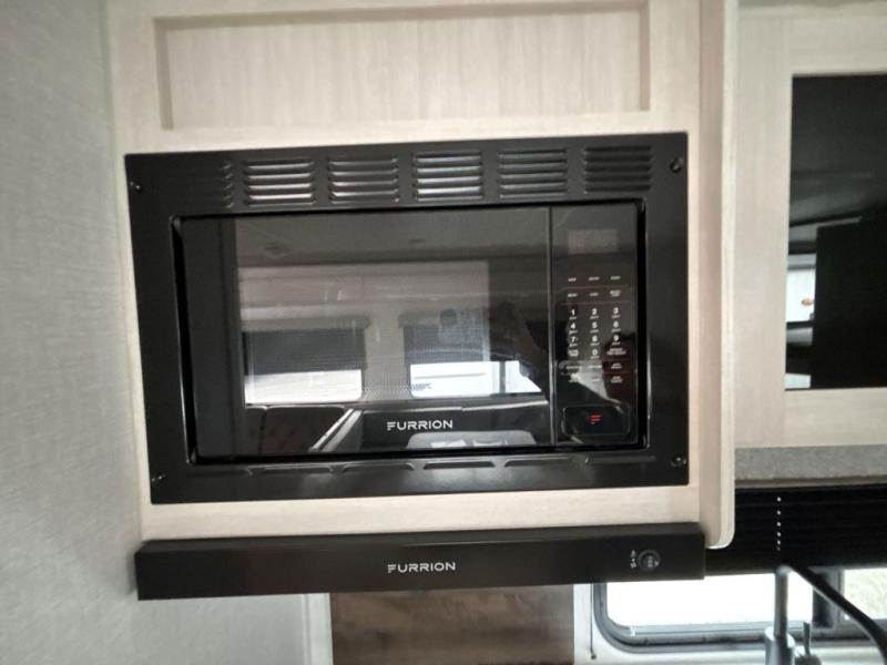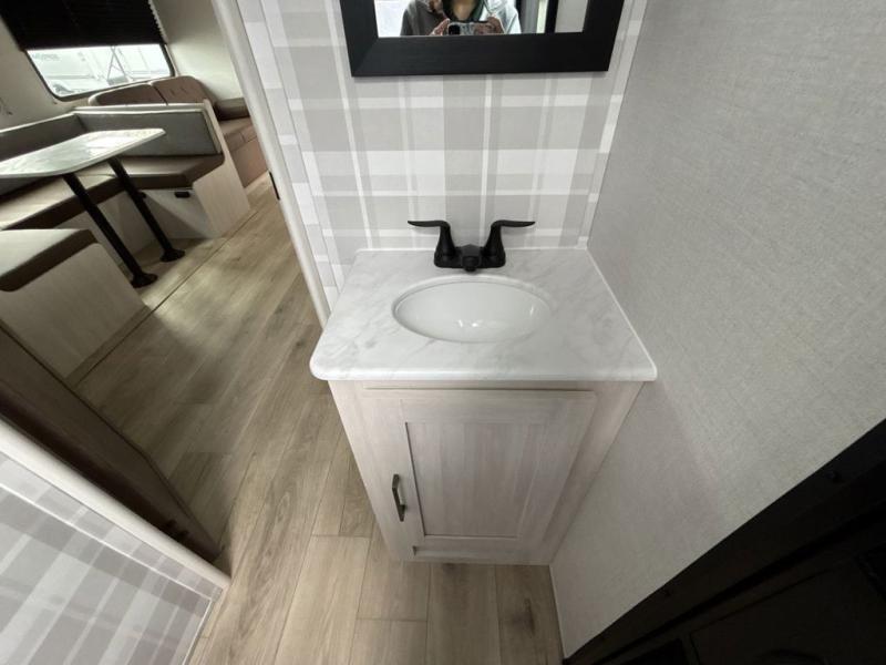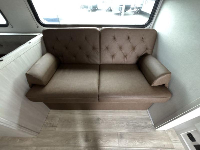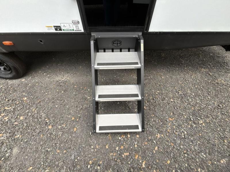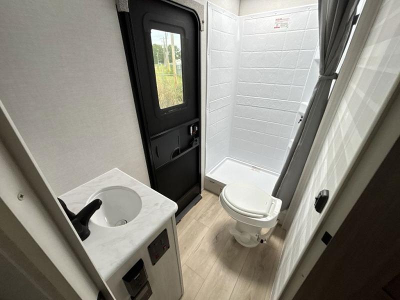 Head to your favorite camping spot with your favorite people in this spacious, dual entry travel trailer! The large slide out houses the U-shaped dinette and sofa where you can relax in the evenings and even let guests sleep over who haven't claimed the double-size bunks. A full bath with its own exterior entry door is convenient for all, and the full kitchen lets you whip up your best meals in the microwave with an air fryer. There is also a walk-in pantry with washer and dryer prep, which gives you the option to add those appliances. When it's time to call it a night, the front private bedroom with a queen bed will provide you with your own space to retreat to, and there are dual bedside wardrobes to keep your clothes organized.