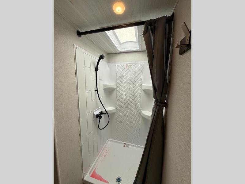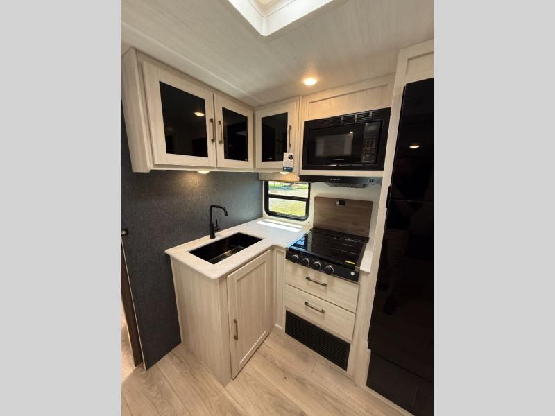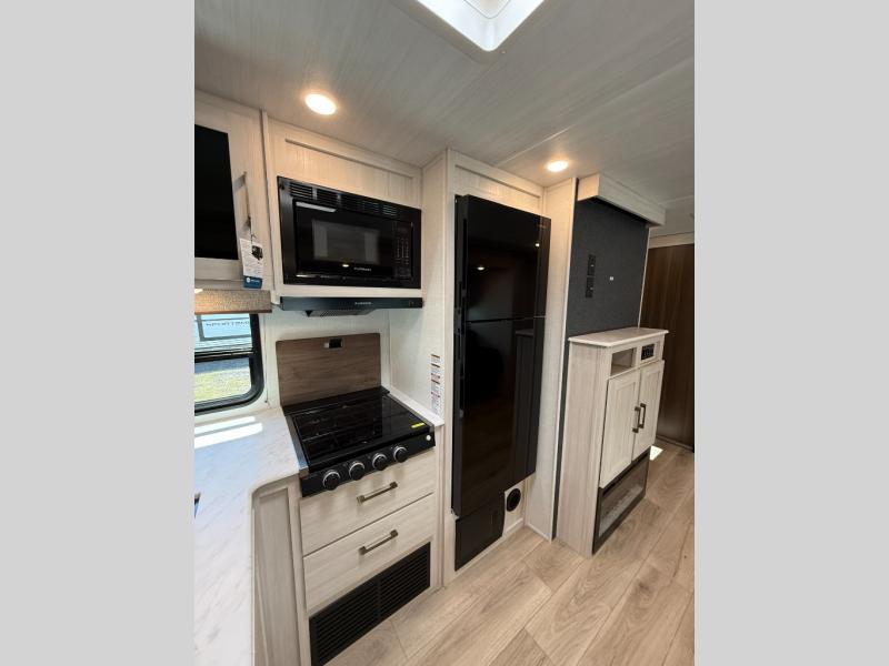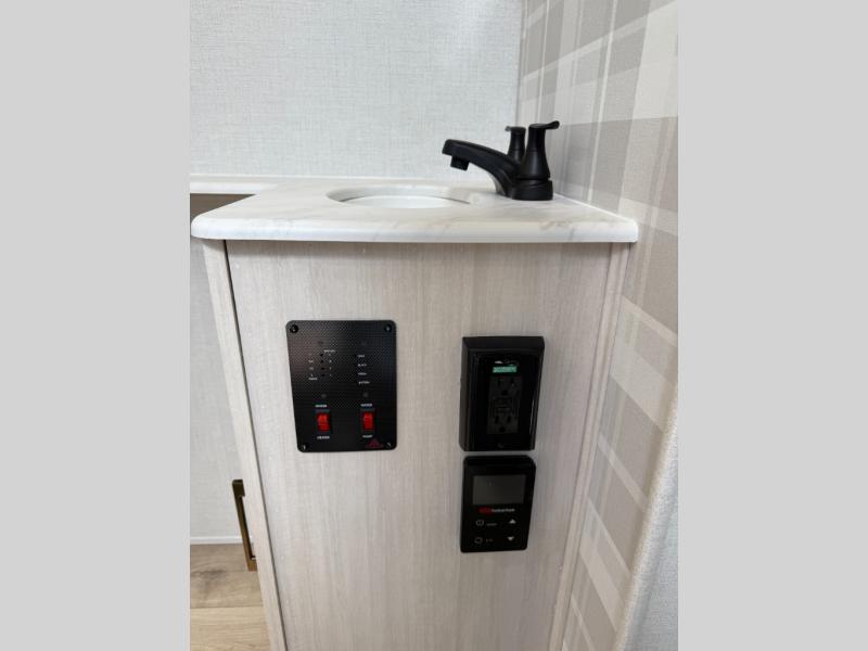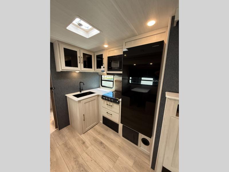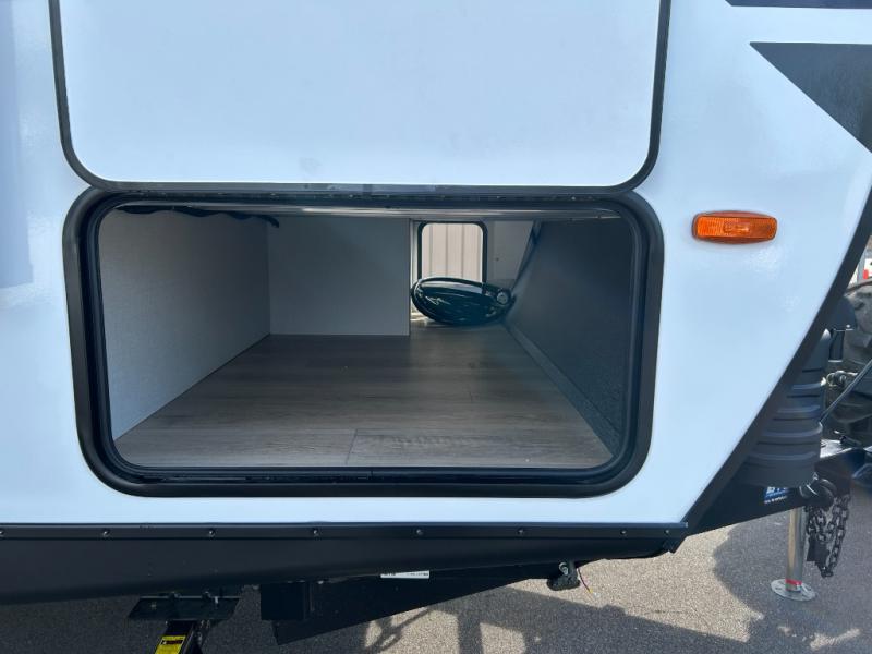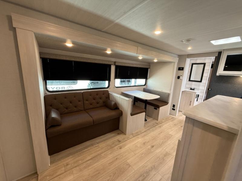 Value and versatility go hand-in-hand with the Surveyor Camp Series travel trailers by Forest River. The solid construction includes a 2" aluminum framed floor with block foam insulation and a sealed underbelly with forced heat and radiant foil insulation. A 100-watt roof mounted solar panel will provide some off-grid power, and the power tongue jack will let you easily hitch up and go whenever you're ready. Additional stand-out features include Surf(X) seamless countertops throughout, two A/C units, an electric awning with LED light strip, black glass friction hinge entry door(s), and so much more!