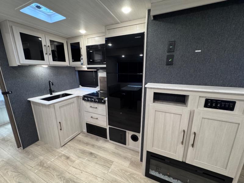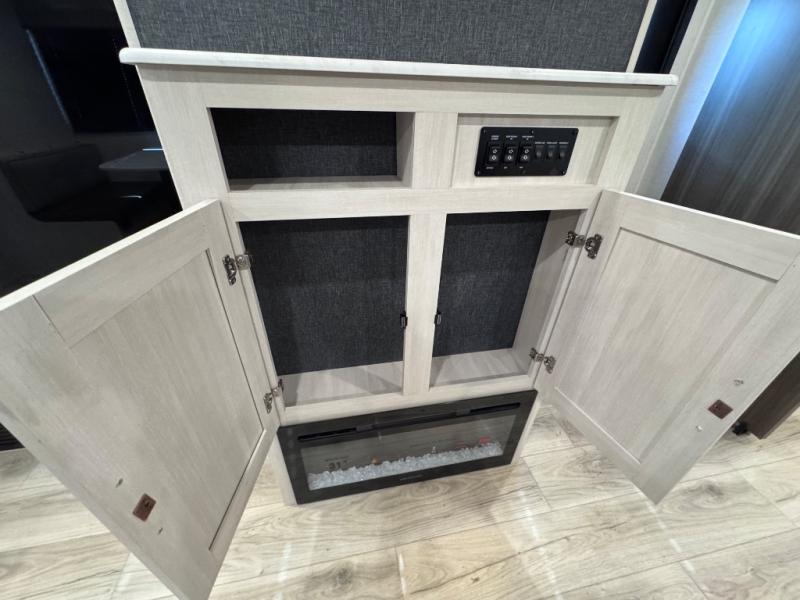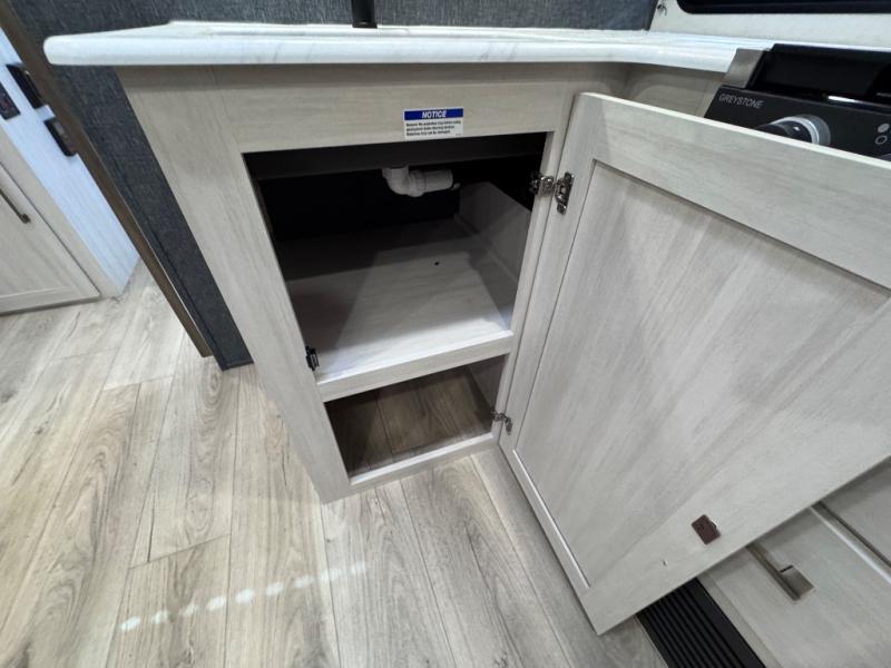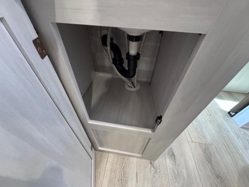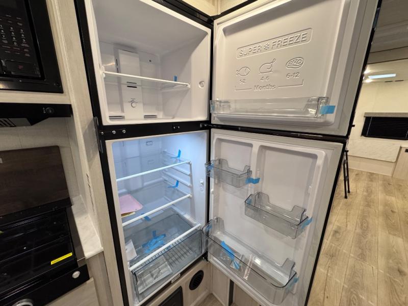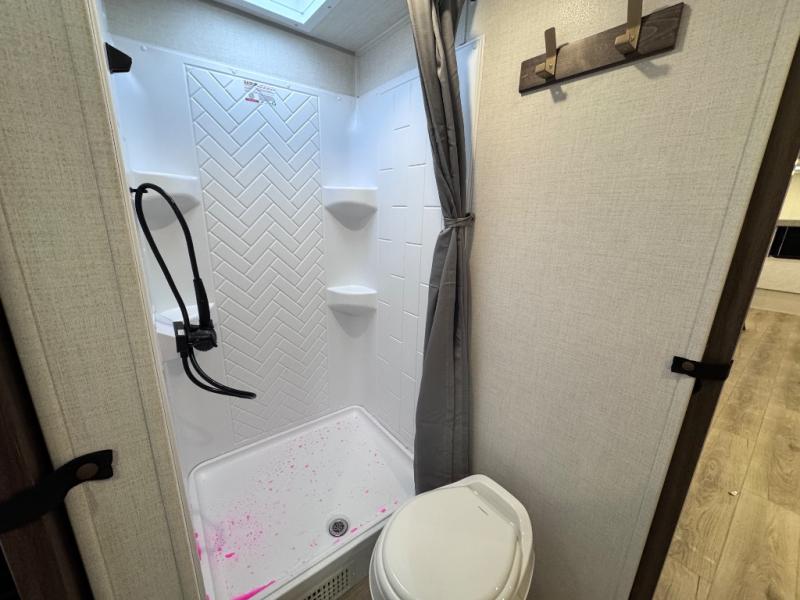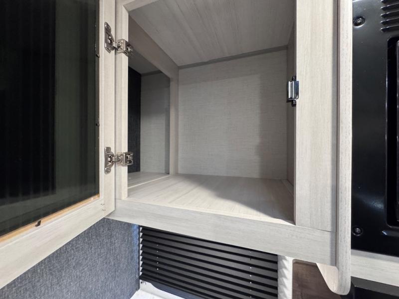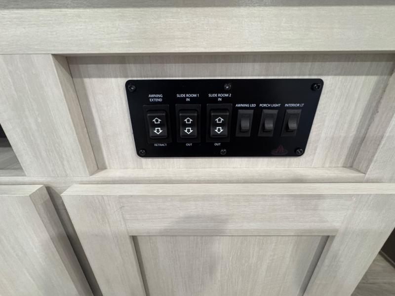 Head to your favorite camping spot with your favorite people in this spacious, dual entry travel trailer! The large slide out houses the booth dinette and sofa where you can relax in the evenings and even let guests sleep over who haven't claimed the triple bunks in the rear bunkhouse. There is also a bunkhouse sofa, two wardrobes, cubbies, and a flip-up desk if you need a space to work. A walk-thru bath is convenient for all, and the full kitchen lets you whip up your best meals in the microwave with an air fryer. There is also a walk-in pantry with washer and dryer prep if you choose to add those appliances. When it's time to call it a night, the front master bedroom with a queen bed will provide you with your own space to retreat to, and there are dual bedside wardrobes to keep your clothes organized.