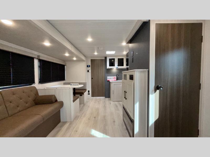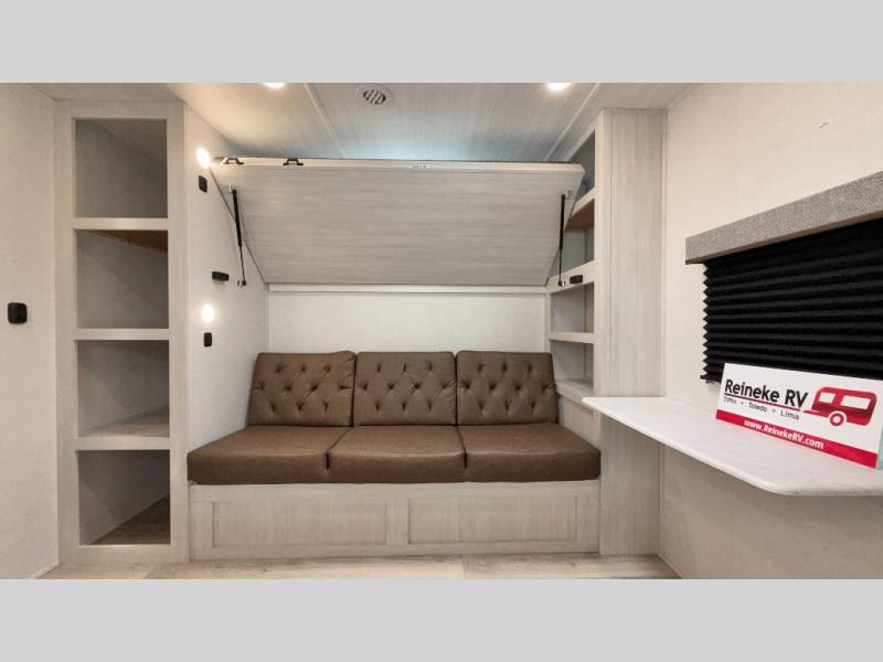 Dual Entry, Rear Private Bunkhouse, Private Queen Bed, Solar Panel, On Demand Water Heater, Walk in Pantry with Washer / Dryer Prep, Booth Dinette, Sofa, Entertainment Center, Fireplace, Walk-Thru Bath, Spare Tire and Sealed Underbelly w/ Forced Heat