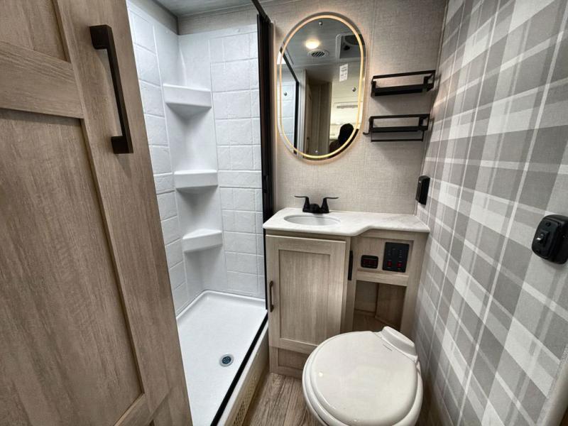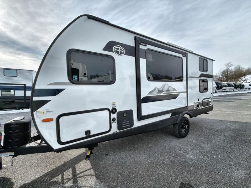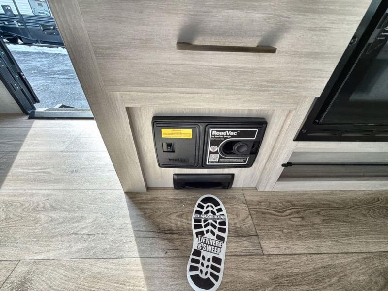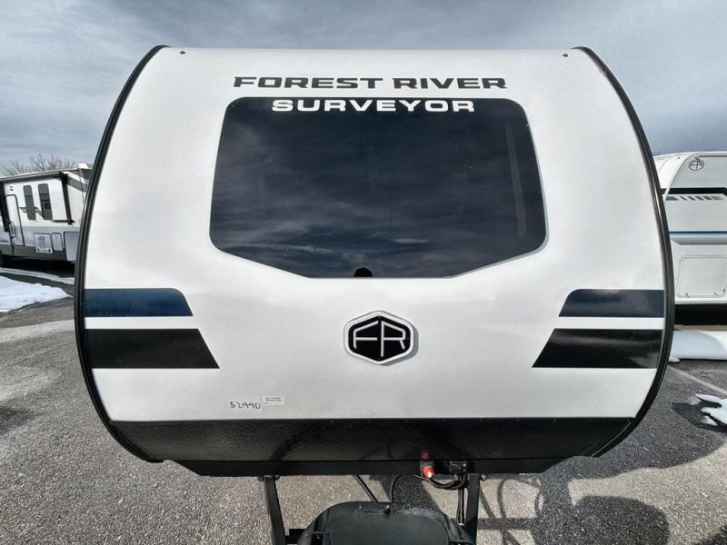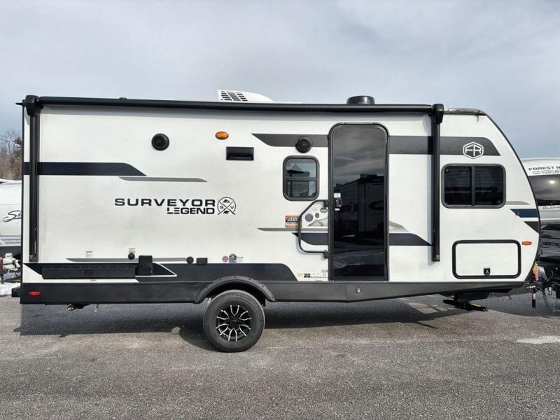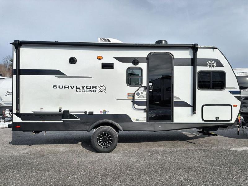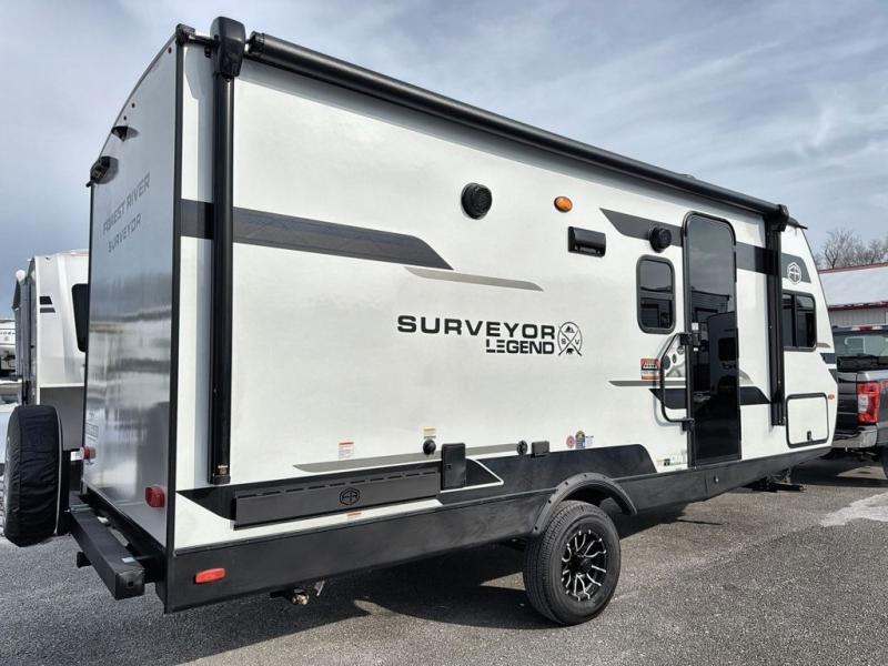 With any Surveyor Legend travel trailer by Forest River you will enjoy quality craftsmanship, convenient amenities, and at-home comforts. The Azdel composite walls provide a longer-lasting trailer, and the power tongue jack with hitch light makes getting back on the road quick and easy. There are also Goodyear® tires and a tire pressure monitoring system (TPMS) for more confident, hassle-free towing. Each model is built with thoughtful details like slam-latch exterior baggage doors and an automotive-style tinted front windshield that gives the front cap a sleek look while letting in natural light. You’ll appreciate camping with a tankless water heater for endless hot showers, a 2" rear accessory hitch to bring bikes or extra gear along, plus a central vacuum system that helps keep your easy-to-clean interior looking fresh.