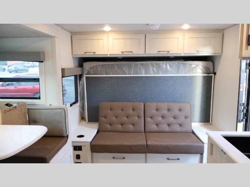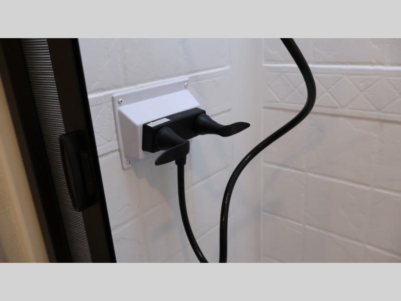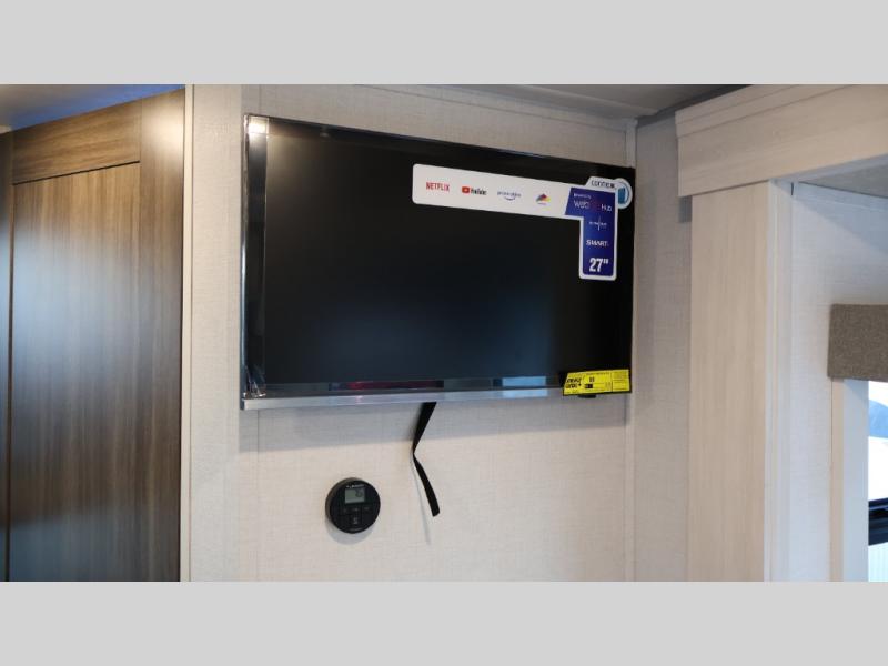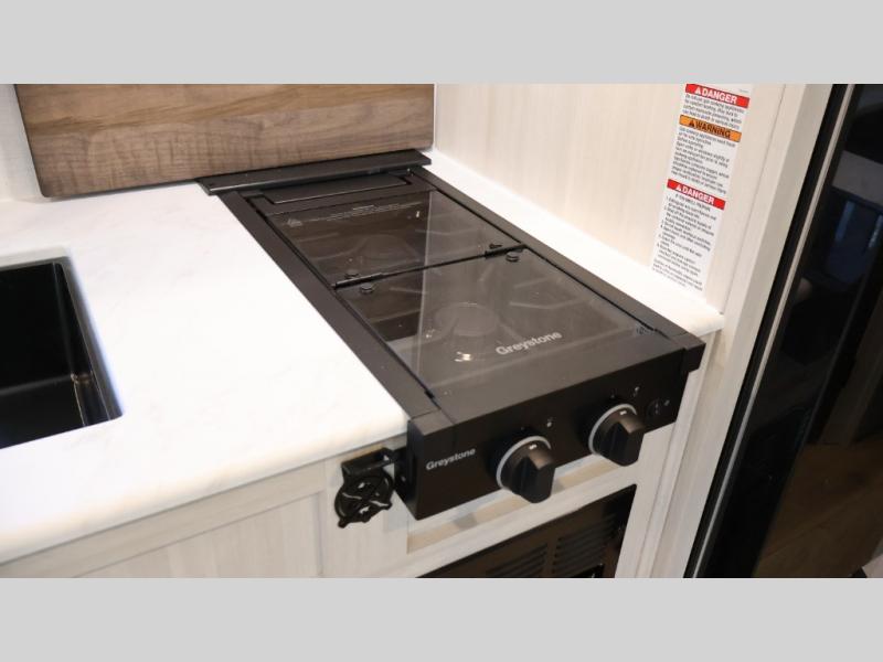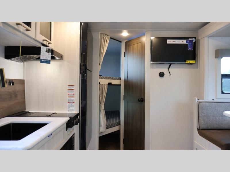 Experiencing the camping lifestyle just got easier with this travel trailer in tow! The outdoor kitchen includes griddle and a shelf, plus there is a two burner cooktop inside if the weather isn't cooperating. There is a dinette slide where you can play a game of cards at, and the HD TV will allow you to keep up on your favorite shows. The kids or your guests can make themselves comfortable on the oversized bunks with a ladder, and the spacious full bath is close by for easy nighttime use. This model also includes a front queen-size Murphy bed with two end tables to set your books or phone on, plus there is overhead storage for your valuables.