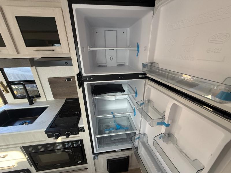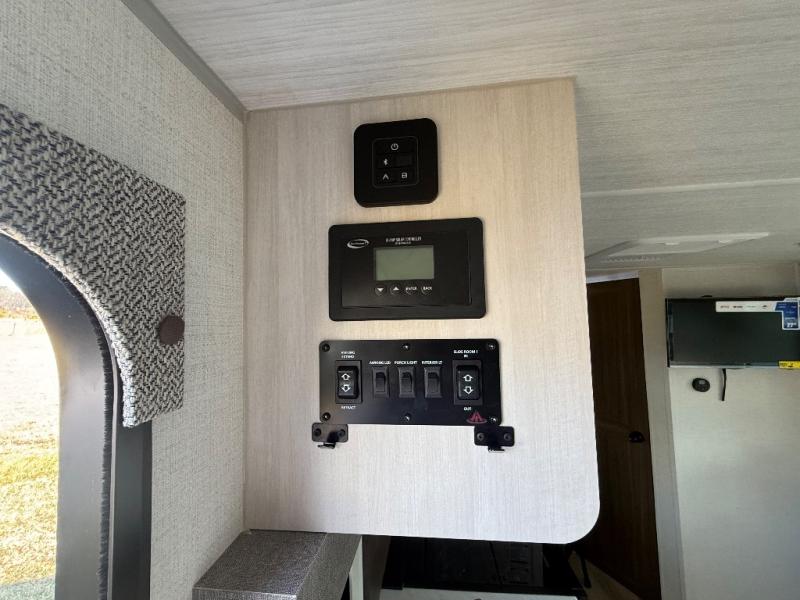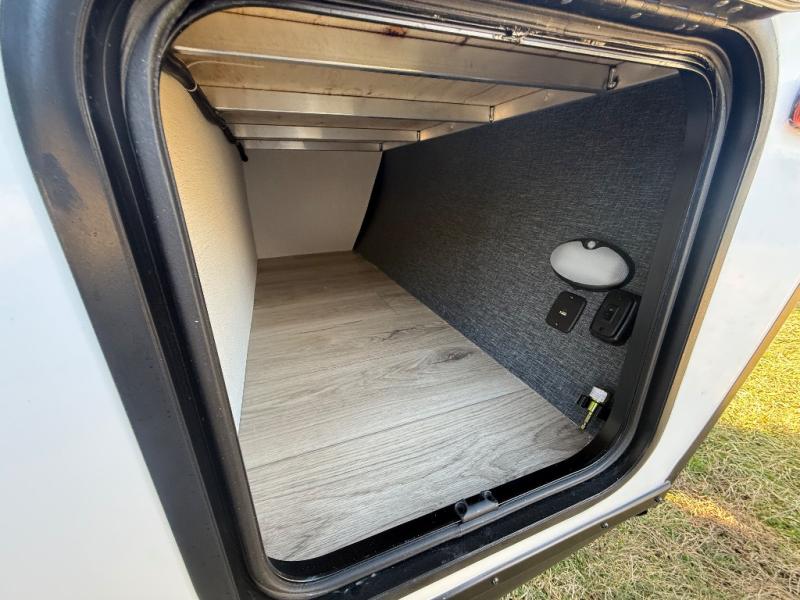 With any Surveyor Legend travel trailer by Forest River you will enjoy quality craftsmanship, convenient amenities, and at-home comforts. The Azdel composite walls provide a longer-lasting trailer, and the power tongue jack with a hitch light will get you back on the road in no-time. There are also Goodyear tires and a tire pressure monitoring system for hassle-free towing. Each model includes the Surveyor Legend Package that comes standard with oversized dinette storage access doors, front slam latch baggage doors, plus an automotive style tinted front windshield. You'll appreciate camping with a tankless water heater for endless hot showers, a 2" accessory hitch to bring bikes along, plus carpet-free interiors and a central vacuum system for easy clean up.