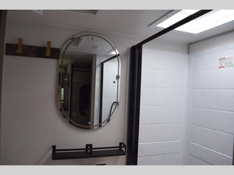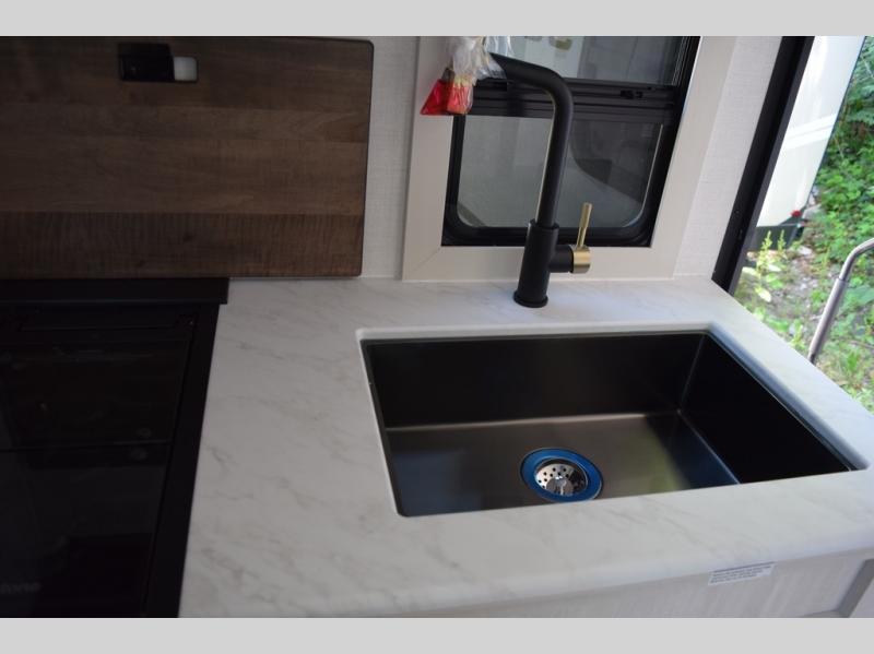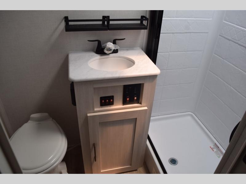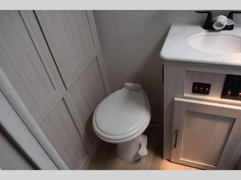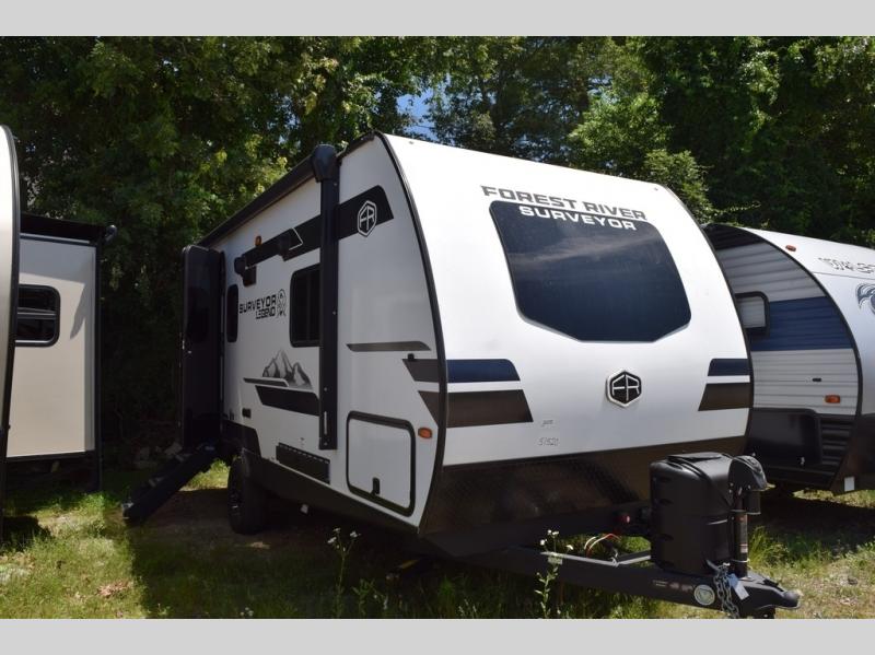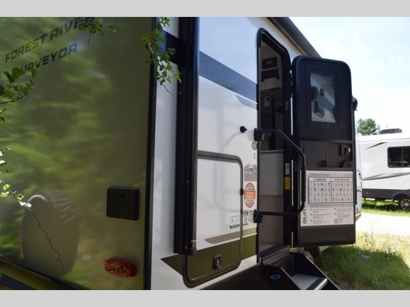 With any Surveyor Legend travel trailer by Forest River you will enjoy quality craftsmanship, convenient amenities, and at-home comforts. The Azdel composite walls provide a longer-lasting trailer, and the power tongue jack with a hitch light will get you back on the road in no-time. There are also Goodyear tires and a tire pressure monitoring system for hassle-free towing. Each model includes the Surveyor Legend Package that comes standard with oversized dinette storage access doors, front slam latch baggage doors, plus an automotive style tinted front windshield. You'll appreciate camping with a tankless water heater for endless hot showers, a 2" accessory hitch to bring bikes along, plus carpet-free interiors and a central vacuum system for easy clean up.