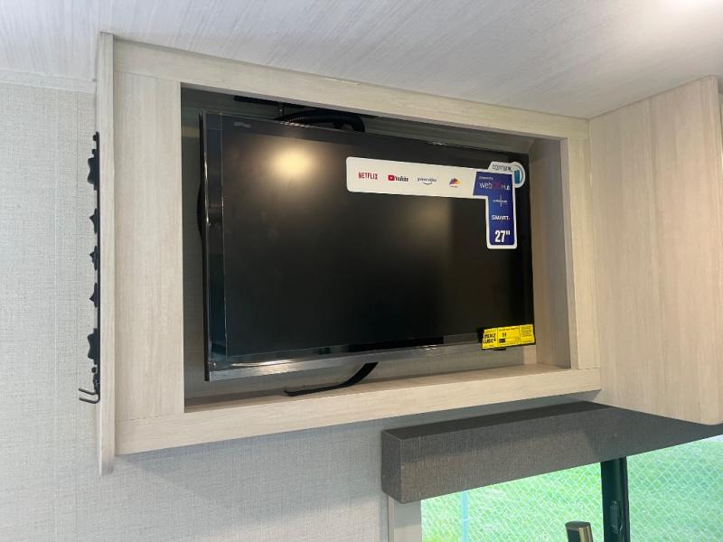 With any Surveyor Legend travel trailer by Forest River you will enjoy quality craftsmanship, convenient amenities, and at-home comforts. The Azdel composite walls provide a longer-lasting trailer, and the power tongue jack with a hitch light will get you back on the road in no-time. There are also Goodyear tires and a tire pressure monitoring system for hassle-free towing. Each model includes the Surveyor Legend Package that comes standard with oversized dinette storage access doors, front slam latch baggage doors, plus an automotive style tinted front windshield. You'll appreciate camping with a tankless water heater for endless hot showers, a 2" accessory hitch to bring bikes along, plus carpet-free interiors and a central vacuum system for easy clean up.