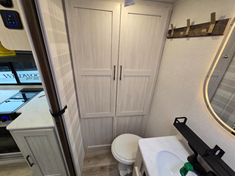 With any Surveyor Legend travel trailer by Forest River you will enjoy quality craftsmanship, convenient amenities, and at-home comforts. The Azdel composite walls provide a longer-lasting trailer, and the power tongue jack with a hitch light will get you back on the road in no-time. There are also Goodyear tires and a tire pressure monitoring system for hassle-free towing. Each model includes the Surveyor Legend Package that comes standard with oversized dinette storage access doors, front slam latch baggage doors, plus an automotive style tinted front windshield. You'll appreciate camping with a tankless water heater for endless hot showers, a 2" accessory hitch to bring bikes along, plus carpet-free interiors and a central vacuum system for easy clean up.