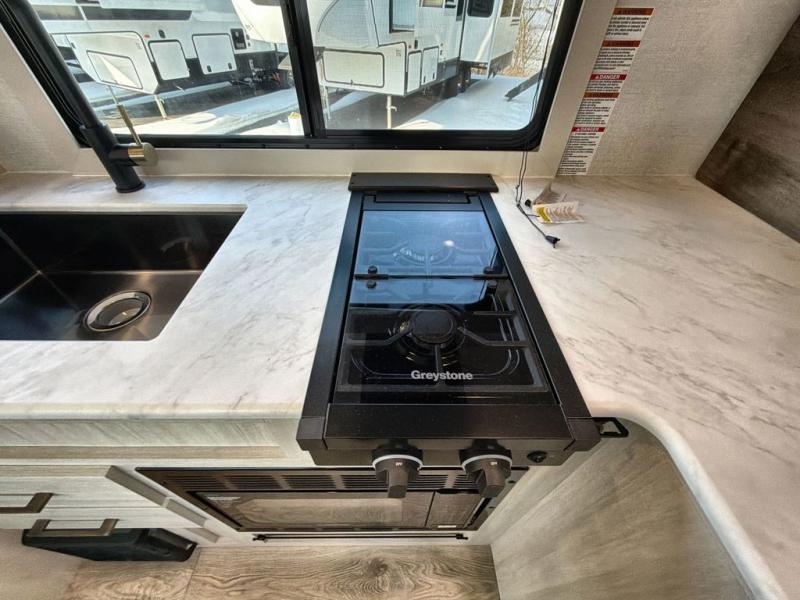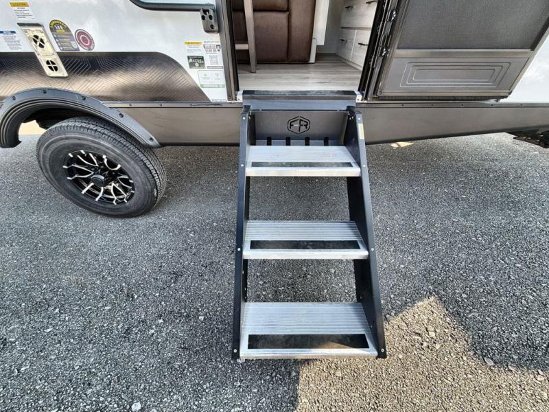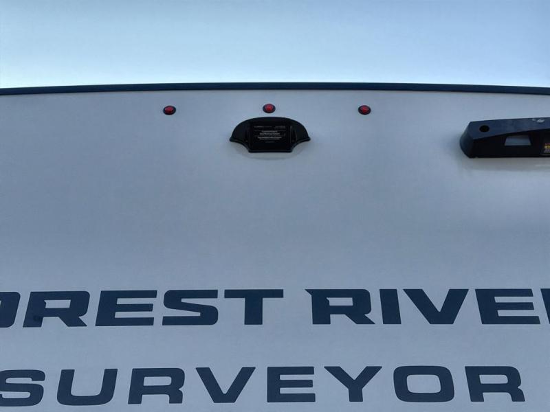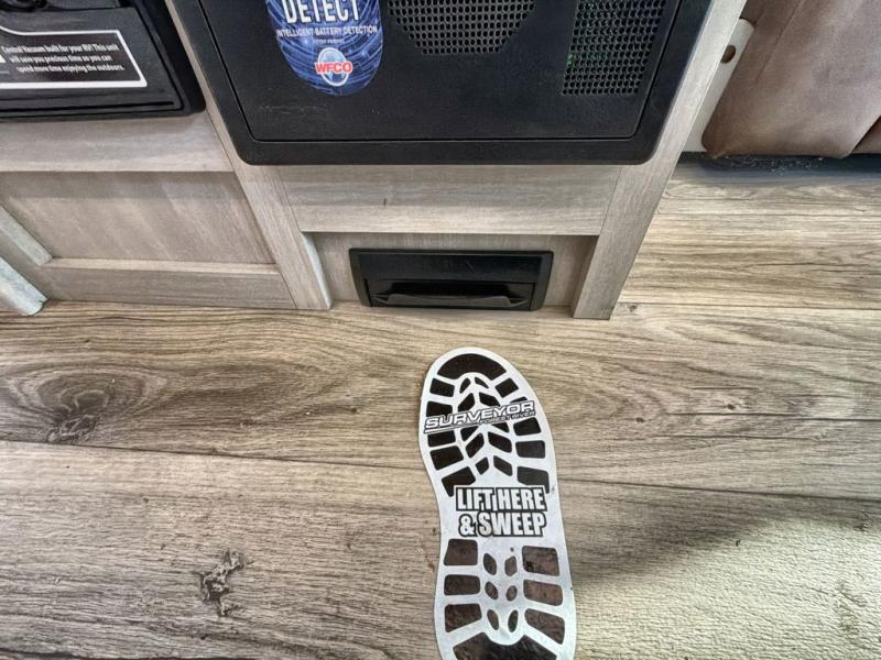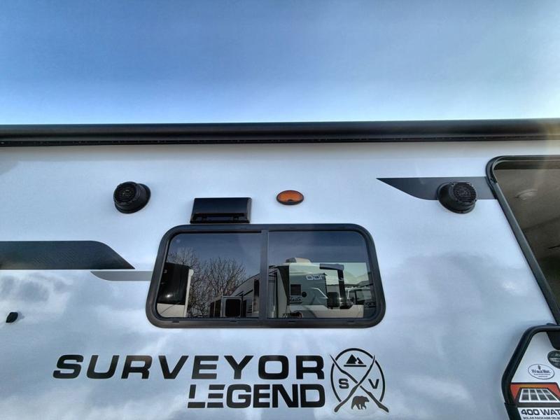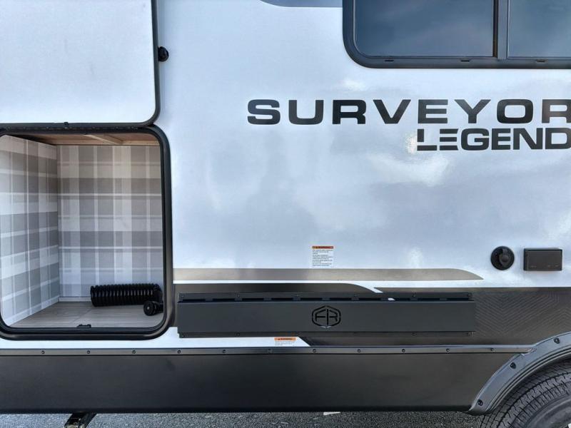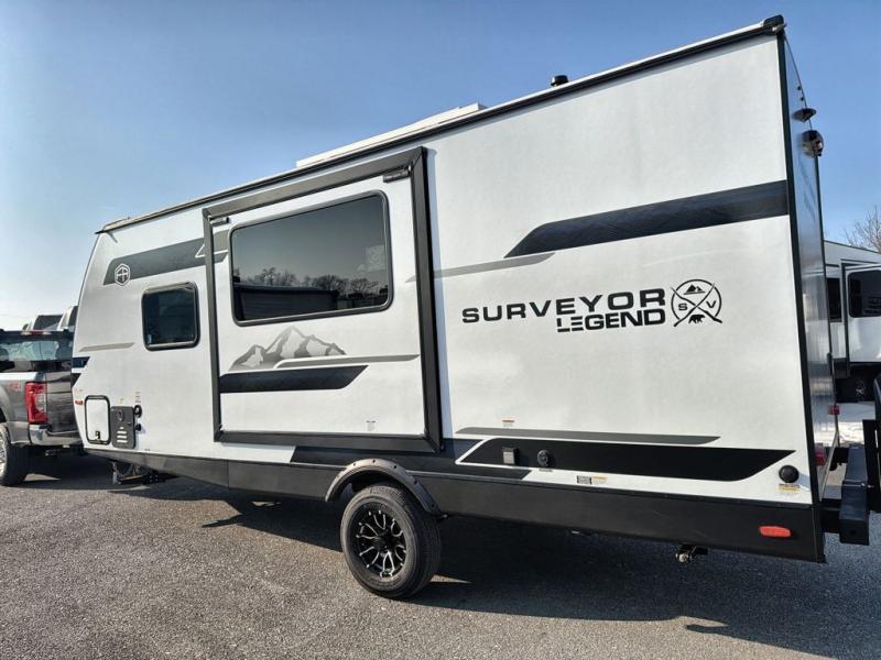 With any Surveyor Legend travel trailer by Forest River you will enjoy quality craftsmanship, convenient amenities, and at-home comforts. The Azdel composite walls provide a longer-lasting trailer, and the power tongue jack with hitch light makes getting back on the road quick and easy. There are also Goodyear® tires and a tire pressure monitoring system (TPMS) for more confident, hassle-free towing. Each model is built with thoughtful details like slam-latch exterior baggage doors and an automotive-style tinted front windshield that gives the front cap a sleek look while letting in natural light. You’ll appreciate camping with a tankless water heater for endless hot showers, a 2" rear accessory hitch to bring bikes or extra gear along, plus a central vacuum system that helps keep your easy-to-clean interior looking fresh.