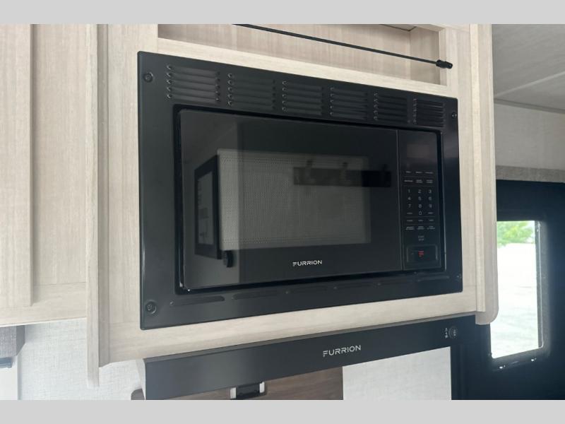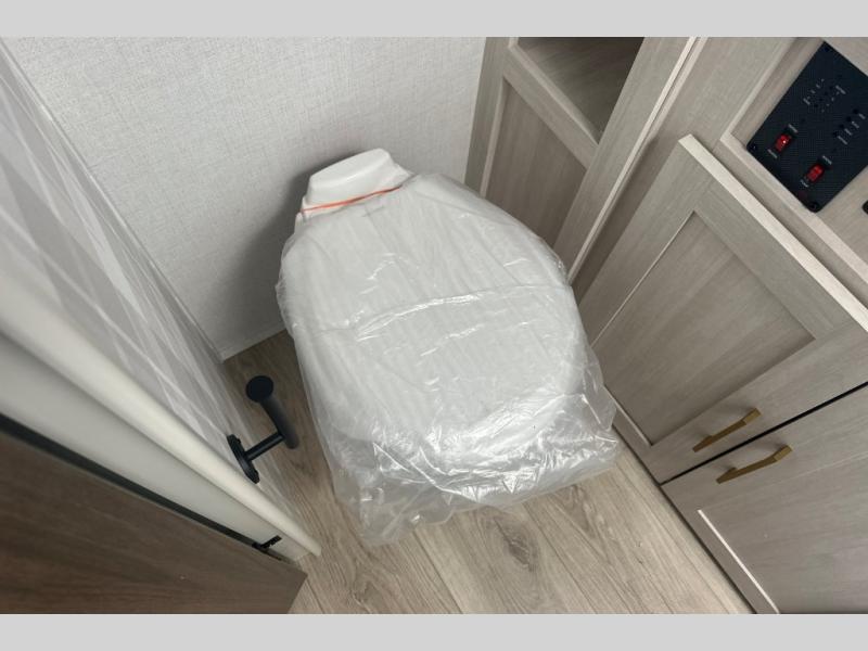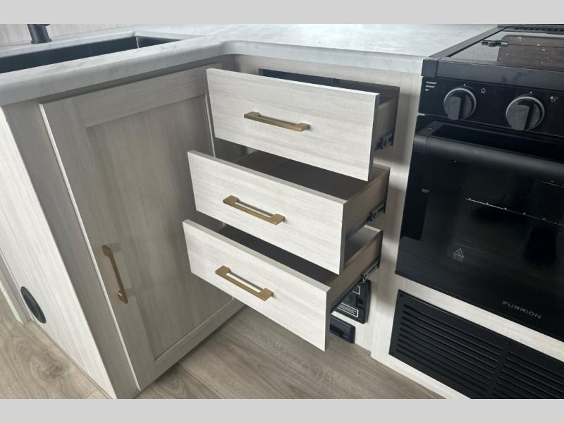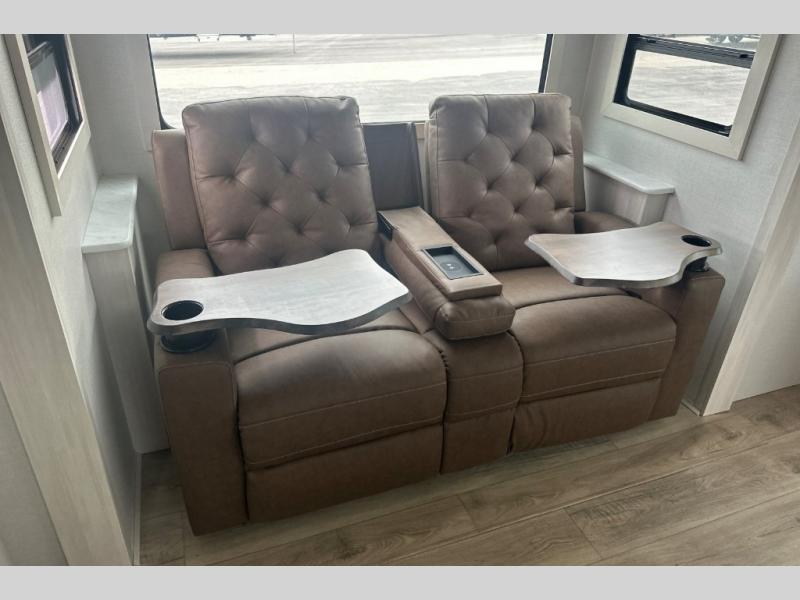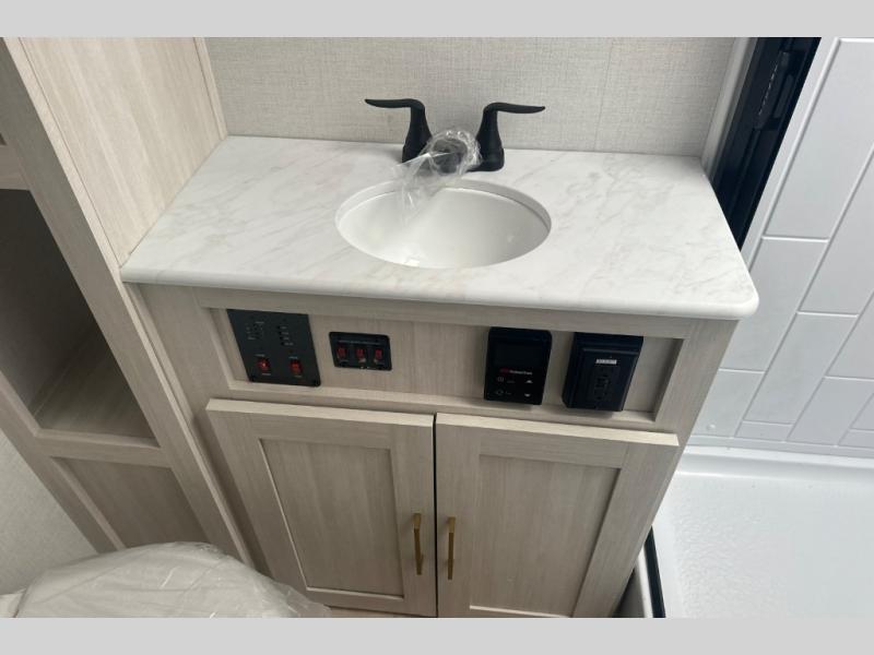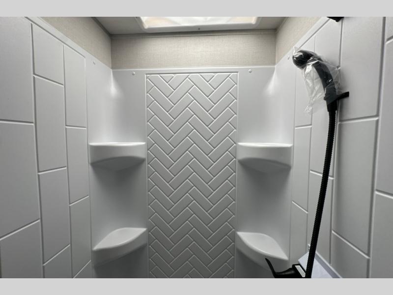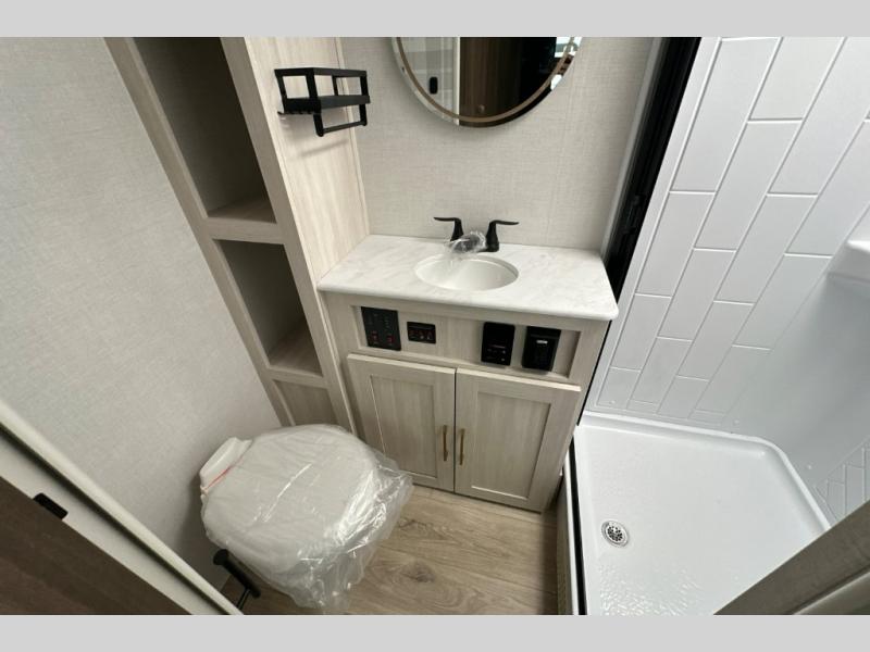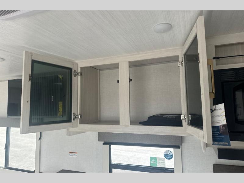 You're going to love every minute spent in this 25' travel trailer! The counter with stools will be the perfect place to enjoy your morning coffee at, plus there is a dinette slide for more seating space. You will get a great night's rest on the queen bed in the front bedroom, and the two wardrobes allow you to keep your clothes tidy. Further customize this trailer by adding the theater seating option or tri-fold sofa option in place of the dinette, and you'll enjoy the standard HD TV for late-night movies!