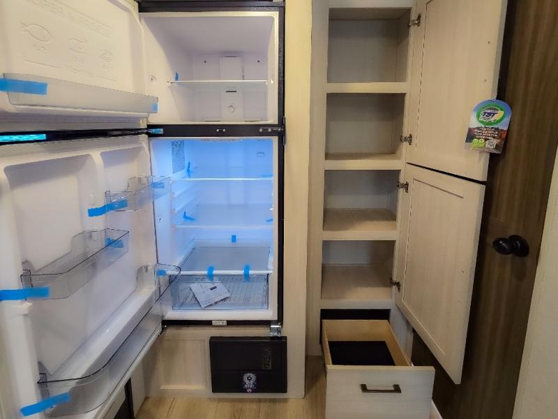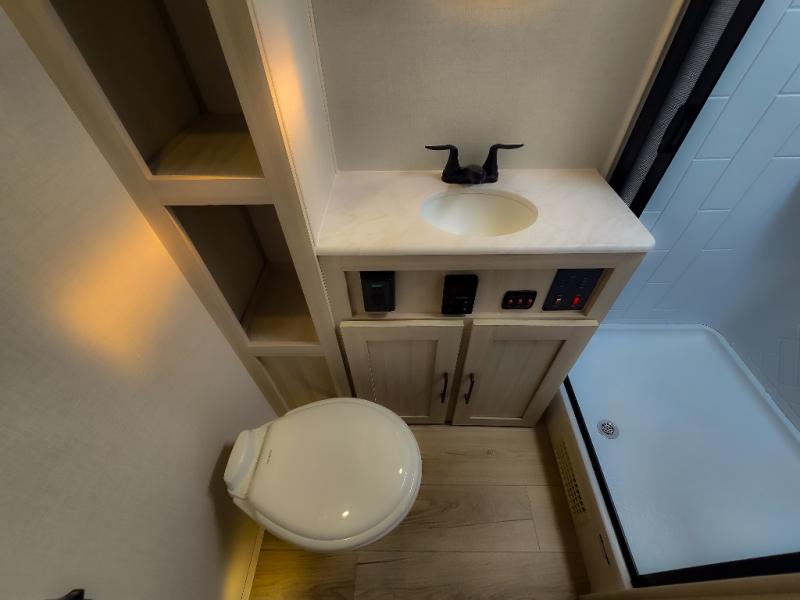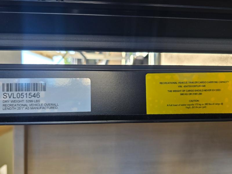 You're going to love every minute spent in this 25' travel trailer! The counter with stools will be the perfect place to enjoy your morning coffee at, plus there is a dinette slide for more seating space. You will get a great night's rest on the queen bed in the front bedroom, and the two wardrobes allow you to keep your clothes tidy. Further customize this trailer by adding the theater seating option or tri-fold sofa option in place of the dinette, and you'll enjoy the standard HD TV for late-night movies!