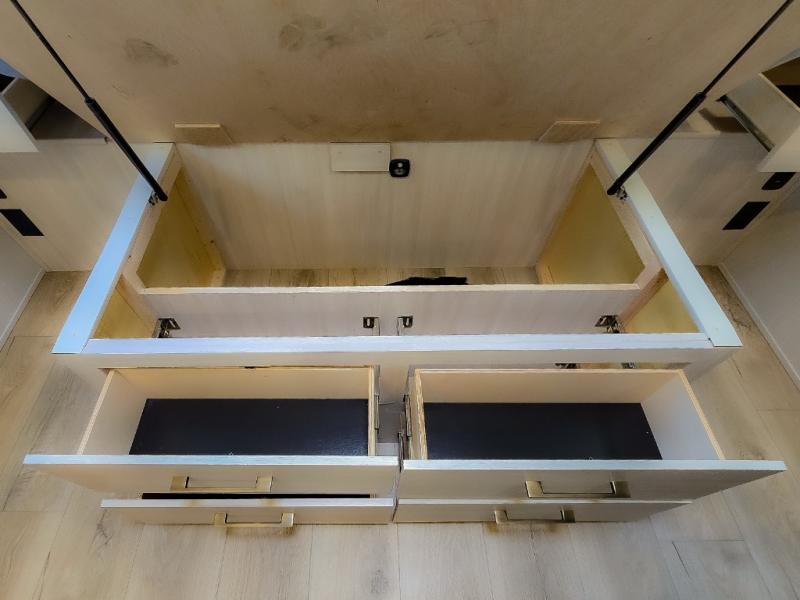 With any Surveyor Legend travel trailer by Forest River you will enjoy quality craftsmanship, convenient amenities, and at-home comforts. The Azdel composite walls provide a longer-lasting trailer, and the power tongue jack with a hitch light will get you back on the road in no-time. There are also Goodyear tires and a tire pressure monitoring system for hassle-free towing. Each model includes the Surveyor Legend Package that comes standard with oversized dinette storage access doors, front slam latch baggage doors, plus an automotive style tinted front windshield. You'll appreciate camping with a tankless water heater for endless hot showers, a 2" accessory hitch to bring bikes along, plus carpet-free interiors and a central vacuum system for easy clean up.
