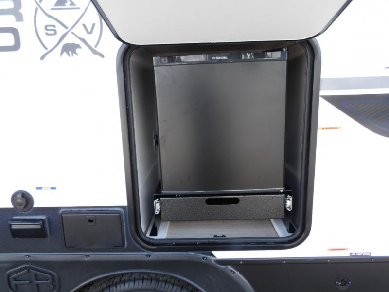 With any Surveyor Legend travel trailer by Forest River you will enjoy quality craftsmanship, convenient amenities, and at-home comforts. The Azdel composite walls provide a longer-lasting trailer, and the power tongue jack with a hitch light will get you back on the road in no-time. There are also Goodyear tires and a tire pressure monitoring system for hassle-free towing. Each model includes the Surveyor Legend Package that comes standard with oversized dinette storage access doors, front slam latch baggage doors, plus an automotive style tinted front windshield. You'll appreciate camping with a tankless water heater for endless hot showers, a 2" accessory hitch to bring bikes along, plus carpet-free interiors and a central vacuum system for easy clean up.