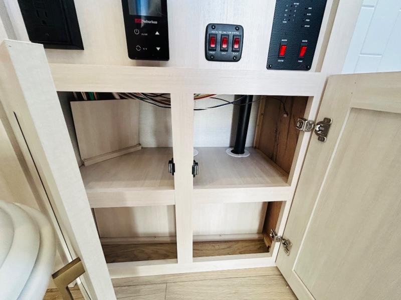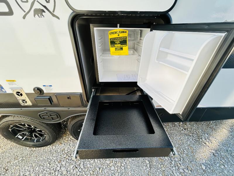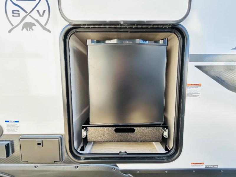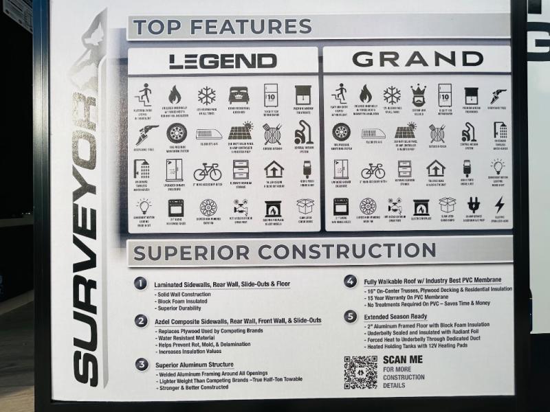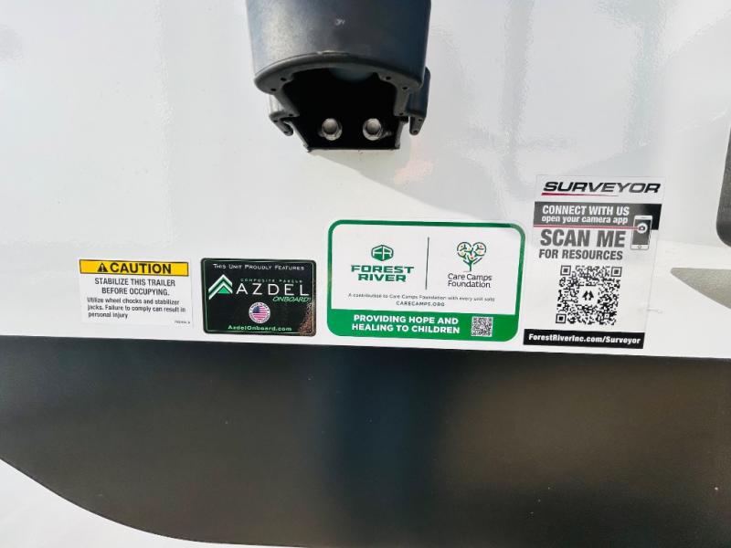 With any Surveyor Legend travel trailer by Forest River you will enjoy quality craftsmanship, convenient amenities, and at-home comforts. The Azdel composite walls provide a longer-lasting trailer, and the power tongue jack with a hitch light will get you back on the road in no-time. There are also Goodyear tires and a tire pressure monitoring system for hassle-free towing. Each model includes the Surveyor Legend Package that comes standard with oversized dinette storage access doors, front slam latch baggage doors, plus an automotive style tinted front windshield. You'll appreciate camping with a tankless water heater for endless hot showers, a 2" accessory hitch to bring bikes along, plus carpet-free interiors and a central vacuum system for easy clean up.