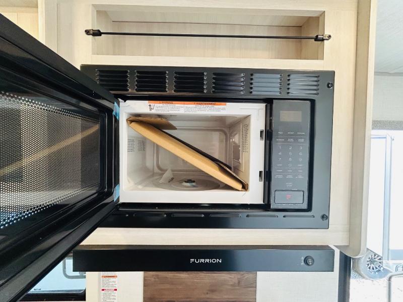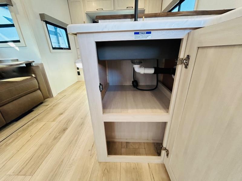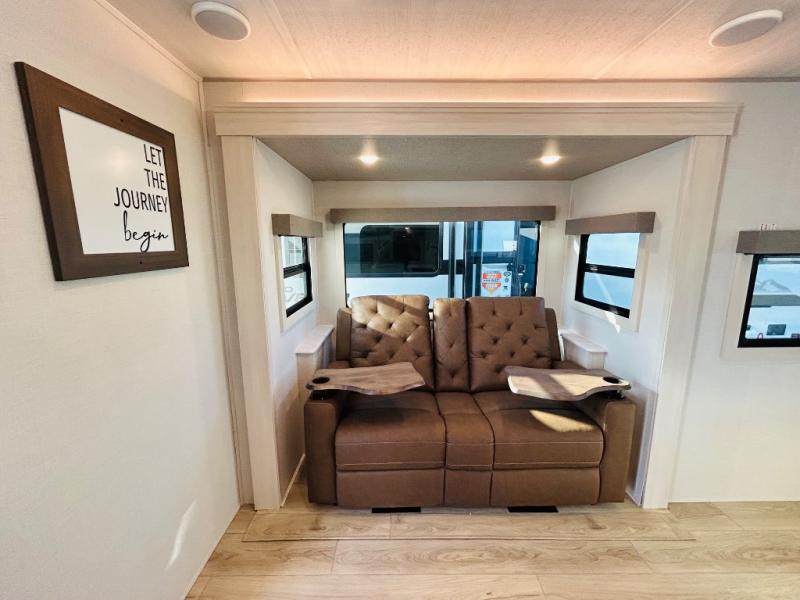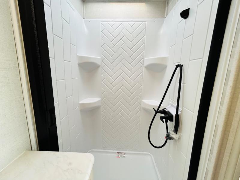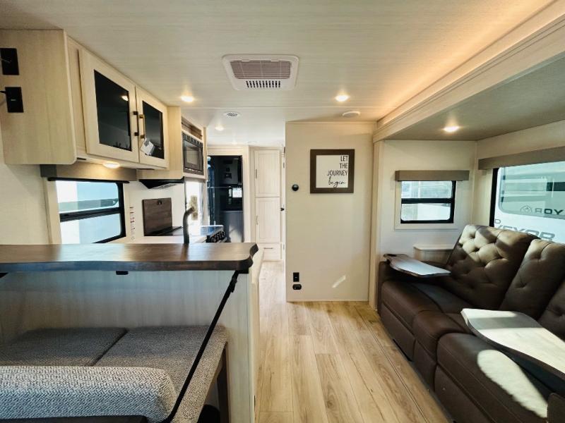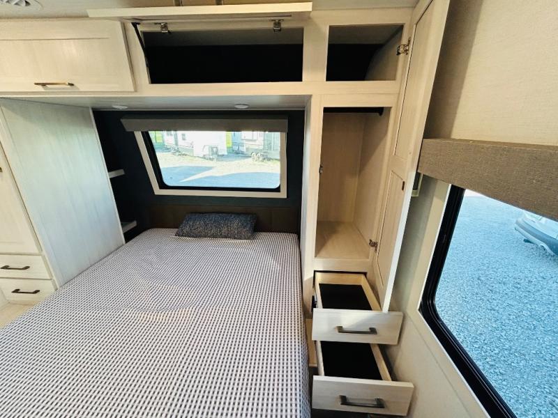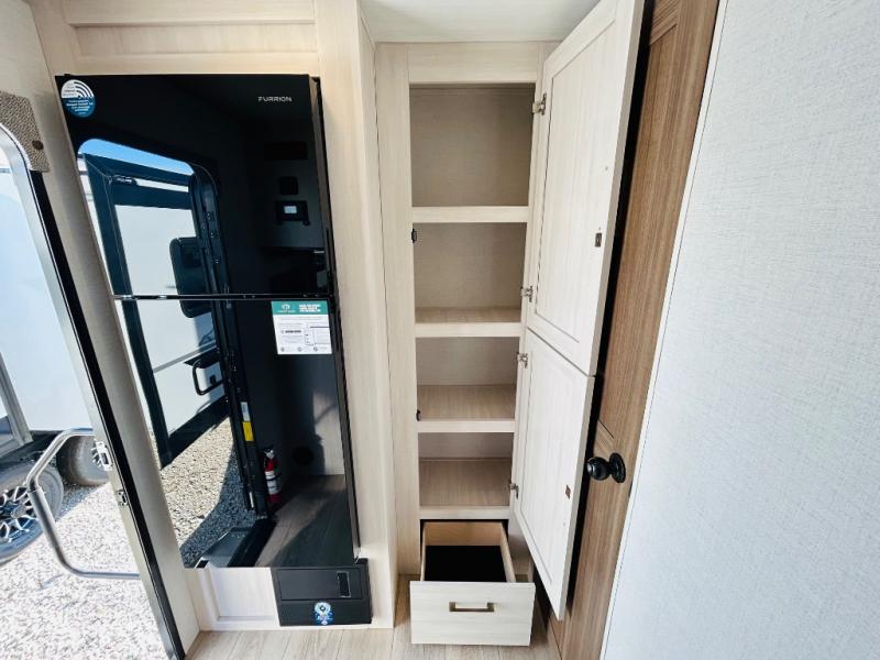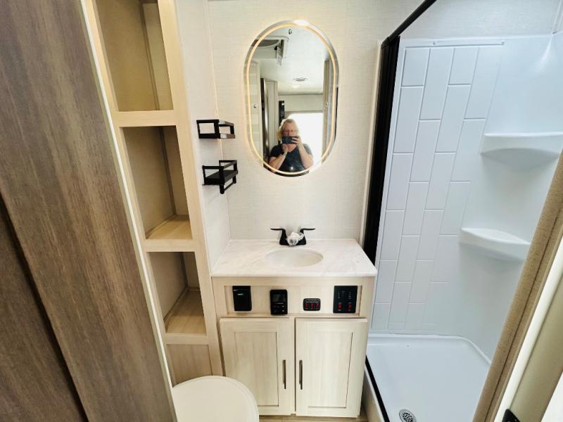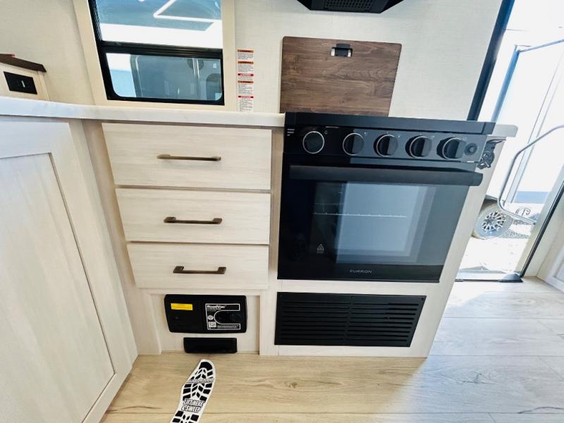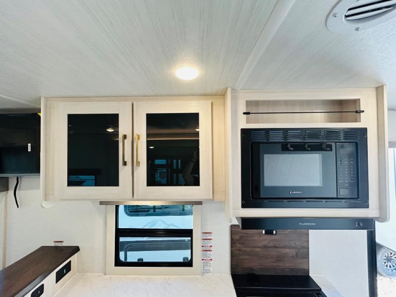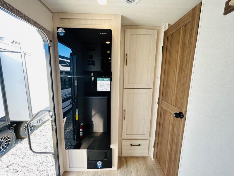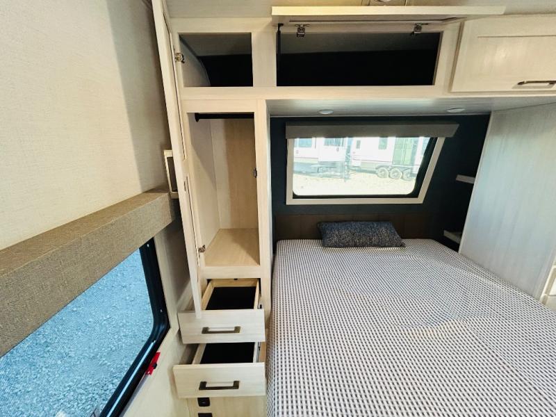 You're going to love every minute spent in this 25' travel trailer! The counter with stools will be the perfect place to enjoy your morning coffee at, plus there is a dinette slide for more seating space. You will get a great night's rest on the queen bed in the front bedroom, and the two wardrobes allow you to keep your clothes tidy. Further customize this trailer by adding the theater seating option or tri-fold sofa option in place of the dinette, and you'll enjoy the standard HD TV for late-night movies!