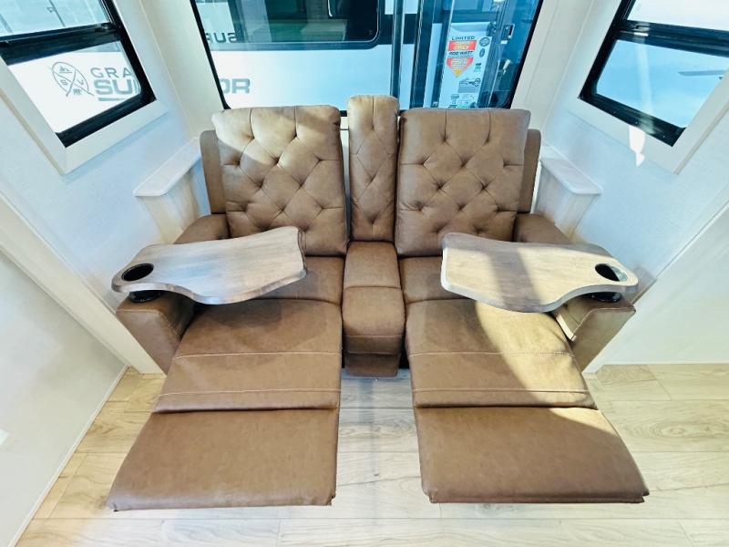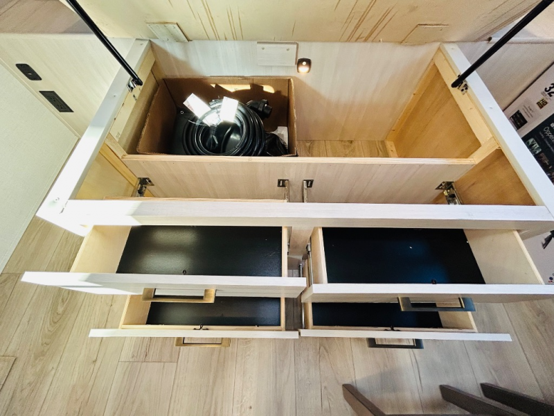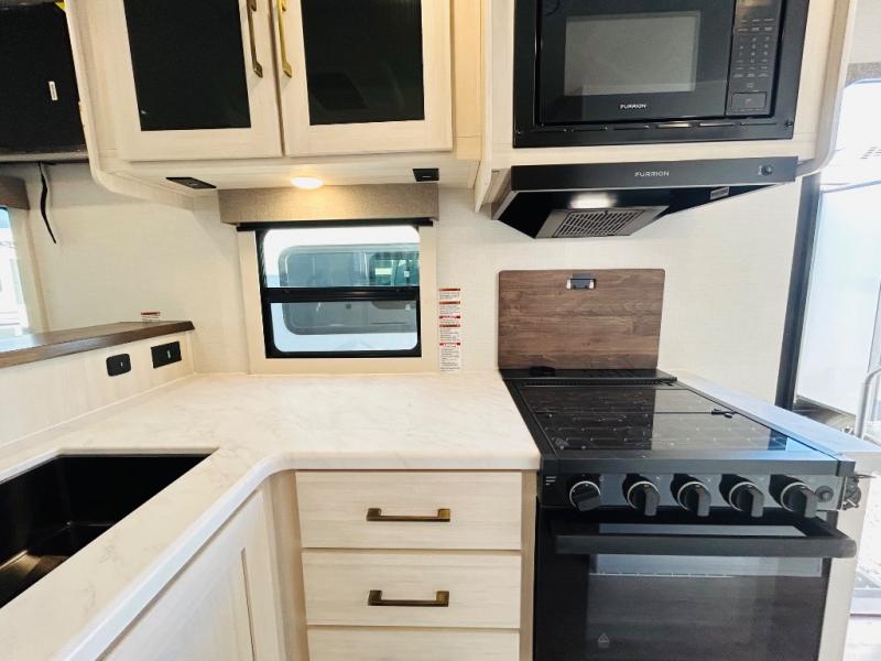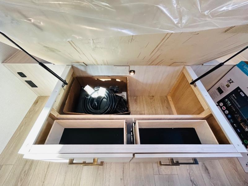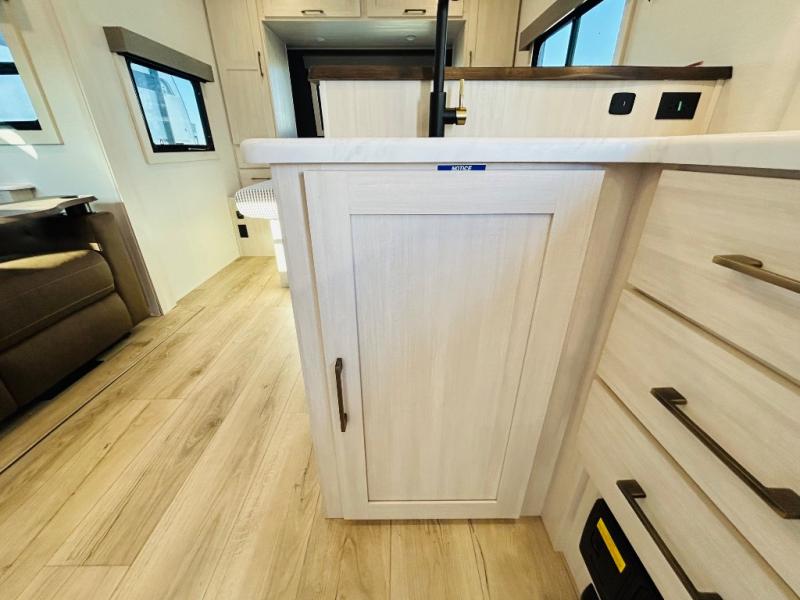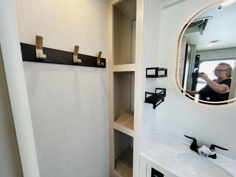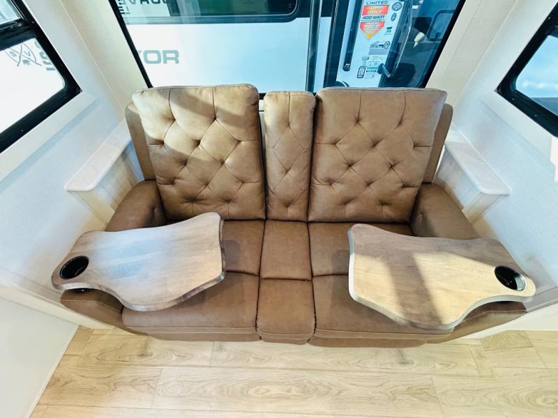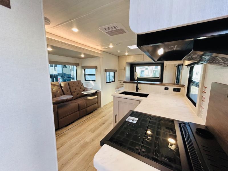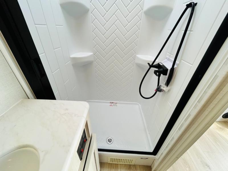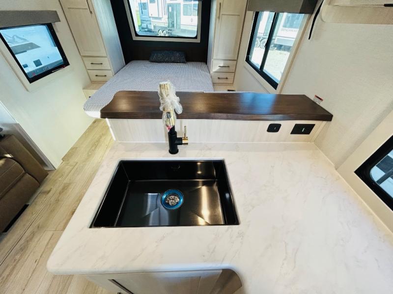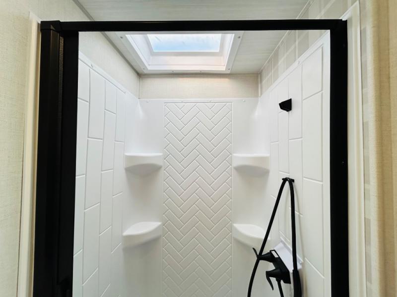 You're going to love every minute spent in this 25' travel trailer! The counter with stools will be the perfect place to enjoy your morning coffee at, plus there is a dinette slide for more seating space. You will get a great night's rest on the queen bed in the front bedroom, and the two wardrobes allow you to keep your clothes tidy. Further customize this trailer by adding the theater seating option or tri-fold sofa option in place of the dinette, and you'll enjoy the standard HD TV for late-night movies!
