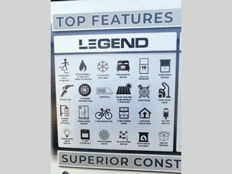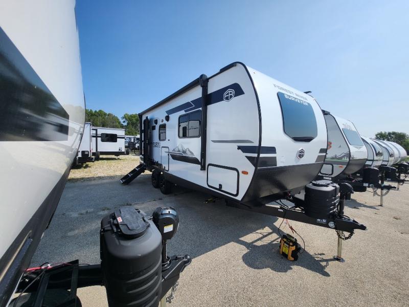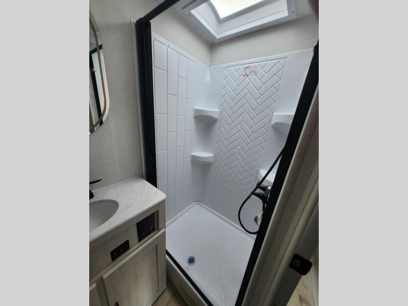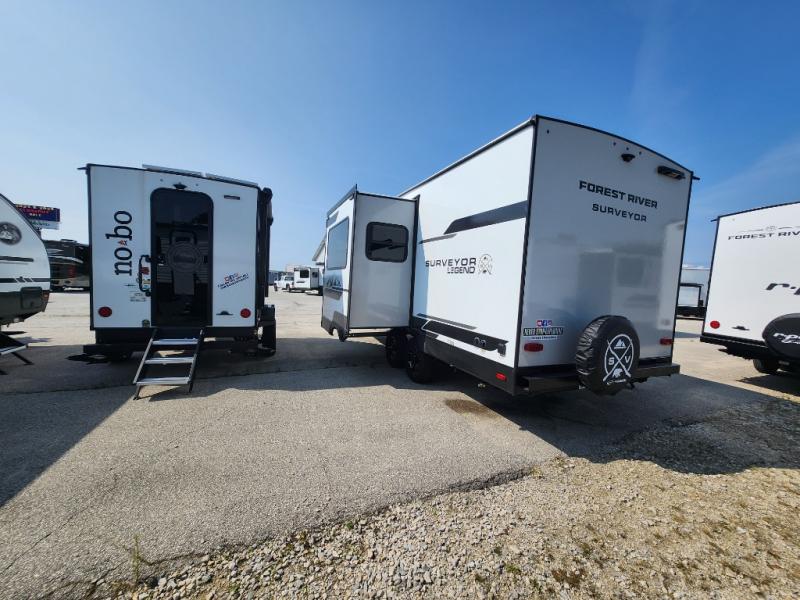 With any Surveyor Legend travel trailer by Forest River you will enjoy quality craftsmanship, convenient amenities, and at-home comforts. The Azdel composite walls provide a longer-lasting trailer, and the power tongue jack with a hitch light will get you back on the road in no-time. There are also Goodyear tires and a tire pressure monitoring system for hassle-free towing. Each model includes the Surveyor Legend Package that comes standard with oversized dinette storage access doors, front slam latch baggage doors, plus an automotive style tinted front windshield. You'll appreciate camping with a tankless water heater for endless hot showers, a 2" accessory hitch to bring bikes along, plus carpet-free interiors and a central vacuum system for easy clean up.
