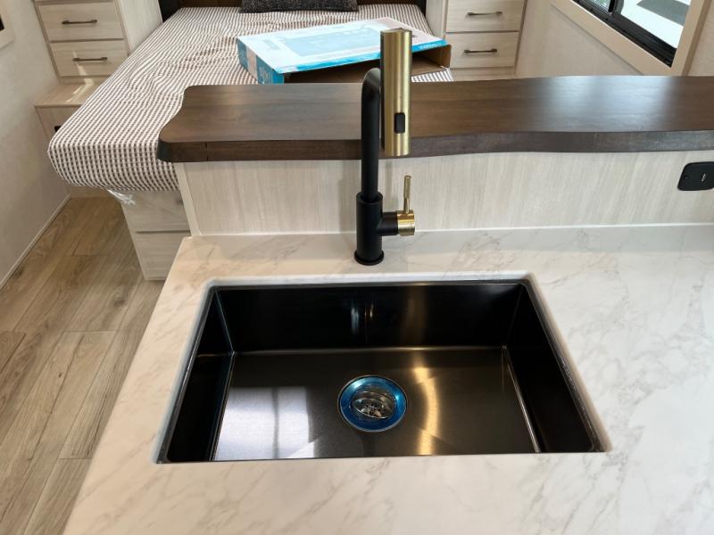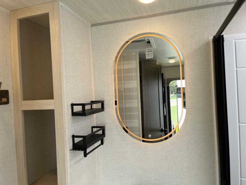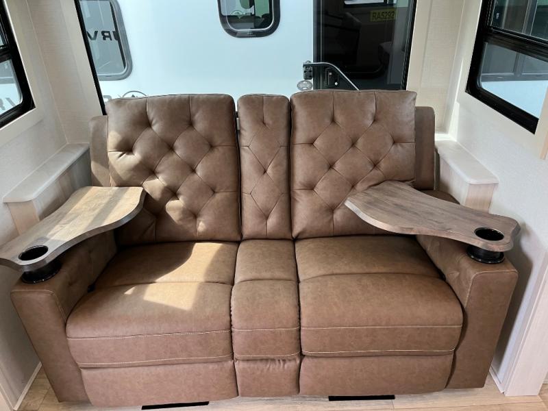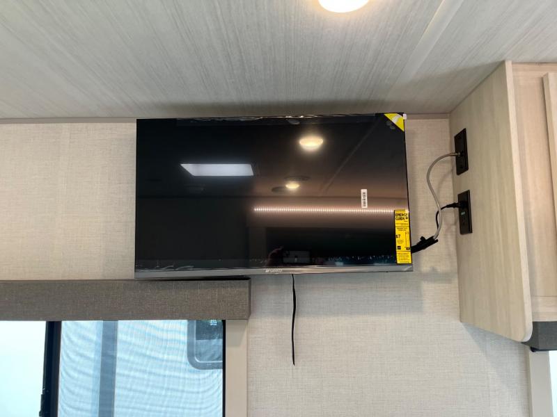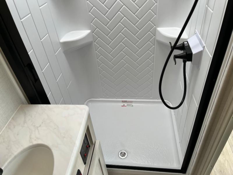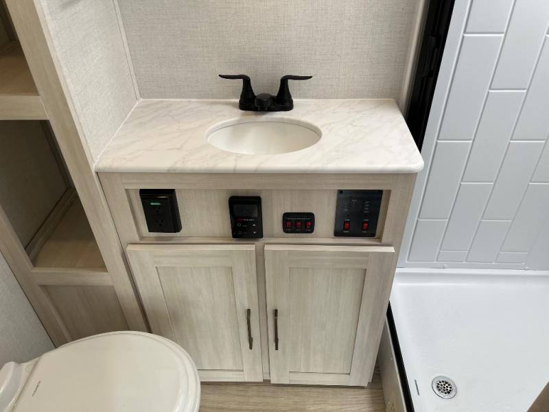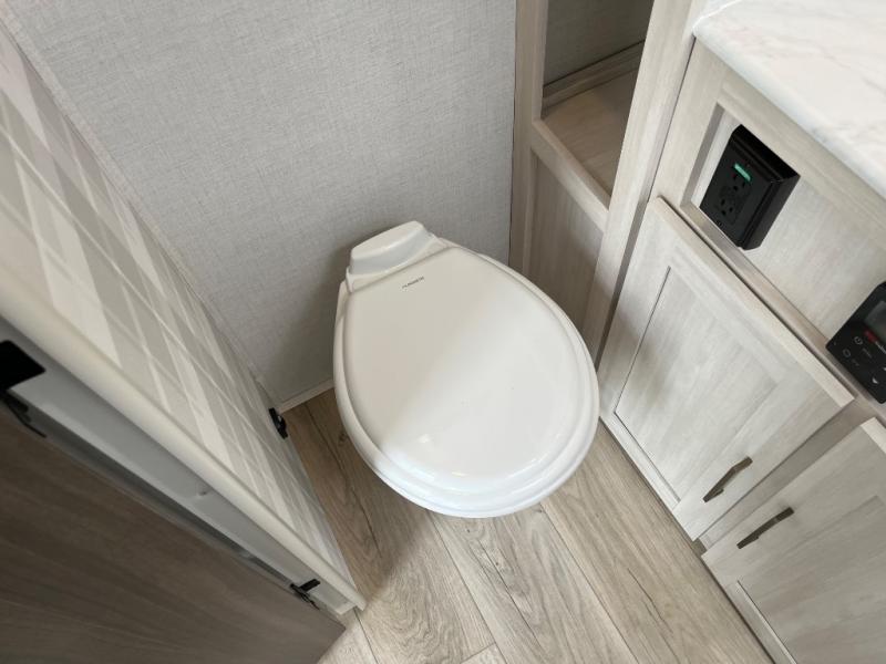 You're going to love every minute spent in this 25' travel trailer! The counter with stools will be the perfect place to enjoy your morning coffee at, plus there is a dinette slide for more seating space. You will get a great night's rest on the queen bed in the front bedroom, and the two wardrobes allow you to keep your clothes tidy. Further customize this trailer by adding the theater seating option or tri-fold sofa option in place of the dinette, and you'll enjoy the standard HD TV for late-night movies!