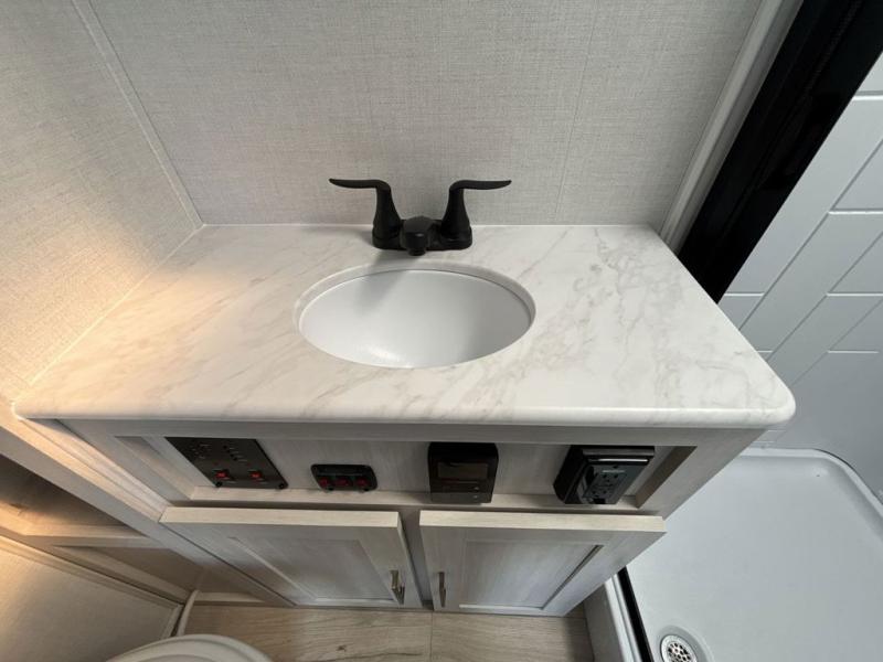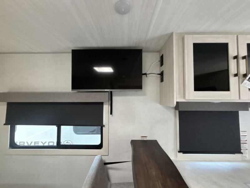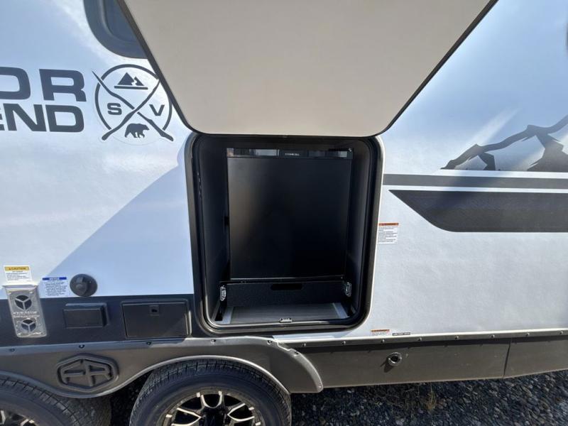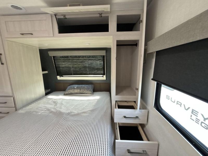 With any Surveyor Legend travel trailer by Forest River you will enjoy quality craftsmanship, convenient amenities, and at-home comforts. The Azdel composite walls provide a longer-lasting trailer, and the power tongue jack with a hitch light will get you back on the road in no-time. There are also Goodyear tires and a tire pressure monitoring system for hassle-free towing. Each model includes the Surveyor Legend Package that comes standard with oversized dinette storage access doors, front slam latch baggage doors, plus an automotive style tinted front windshield. You'll appreciate camping with a tankless water heater for endless hot showers, a 2" accessory hitch to bring bikes along, plus carpet-free interiors and a central vacuum system for easy clean up.