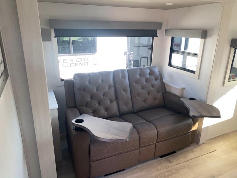 With any Surveyor Legend travel trailer by Forest River you will enjoy quality craftsmanship, convenient amenities, and at-home comforts. The Azdel composite walls provide a longer-lasting trailer, and the power tongue jack with a hitch light will get you back on the road in no-time. There are also Goodyear tires and a tire pressure monitoring system for hassle-free towing. Each model includes the Surveyor Legend Package that comes standard with oversized dinette storage access doors, front slam latch baggage doors, plus an automotive style tinted front windshield. You'll appreciate camping with a tankless water heater for endless hot showers, a 2" accessory hitch to bring bikes along, plus carpet-free interiors and a central vacuum system for easy clean up.
