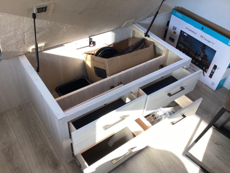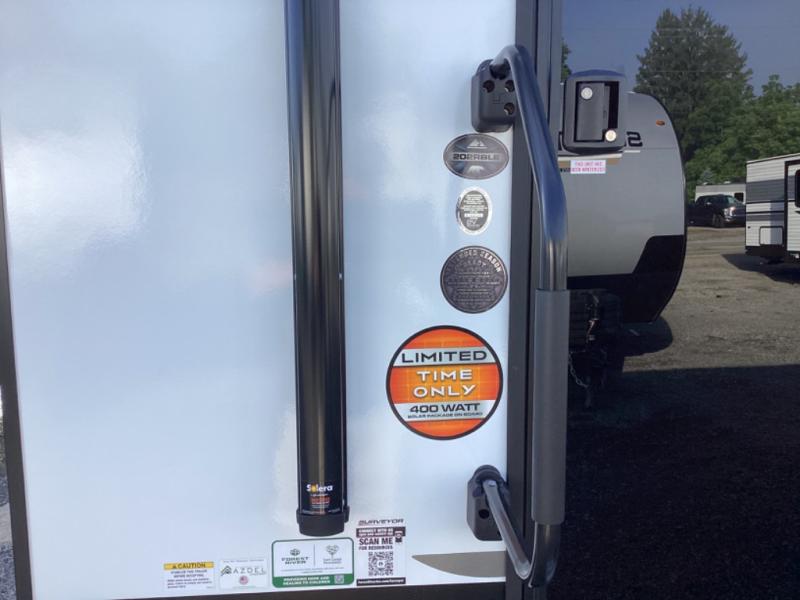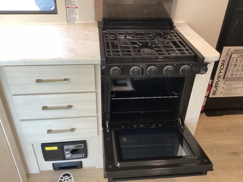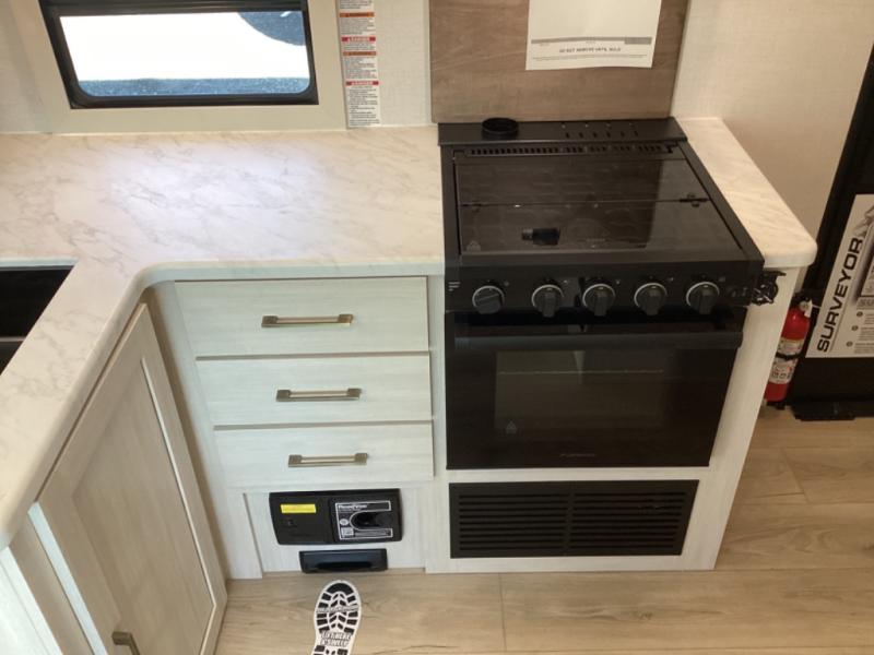 With any Surveyor Legend travel trailer by Forest River you will enjoy quality craftsmanship, convenient amenities, and at-home comforts. The Azdel composite walls provide a longer-lasting trailer, and the power tongue jack with a hitch light will get you back on the road in no-time. There are also Goodyear tires and a tire pressure monitoring system for hassle-free towing. Each model includes the Surveyor Legend Package that comes standard with oversized dinette storage access doors, front slam latch baggage doors, plus an automotive style tinted front windshield. You'll appreciate camping with a tankless water heater for endless hot showers, a 2" accessory hitch to bring bikes along, plus carpet-free interiors and a central vacuum system for easy clean up.