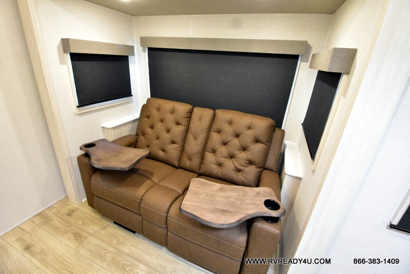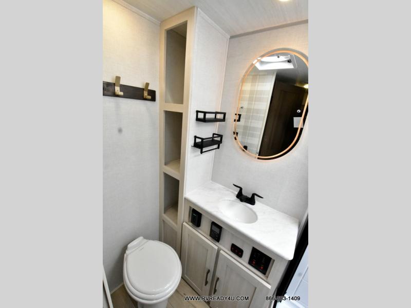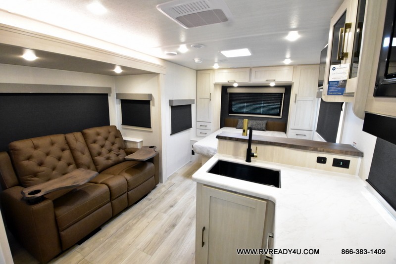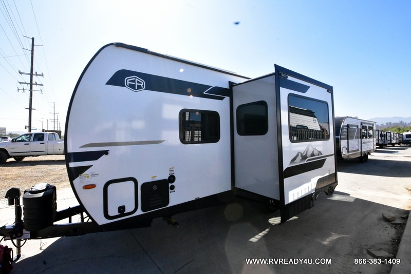 You're going to love every minute spent in this 25' travel trailer! The counter with stools will be the perfect place to enjoy your morning coffee at, plus there is a dinette slide for more seating space. You will get a great night's rest on the queen bed in the front bedroom, and the two wardrobes allow you to keep your clothes tidy. Further customize this trailer by adding the theater seating option or tri-fold sofa option in place of the dinette, and you'll enjoy the standard HD TV for late-night movies!
