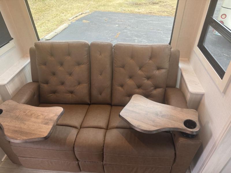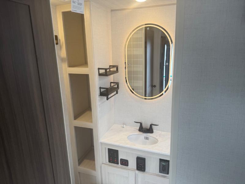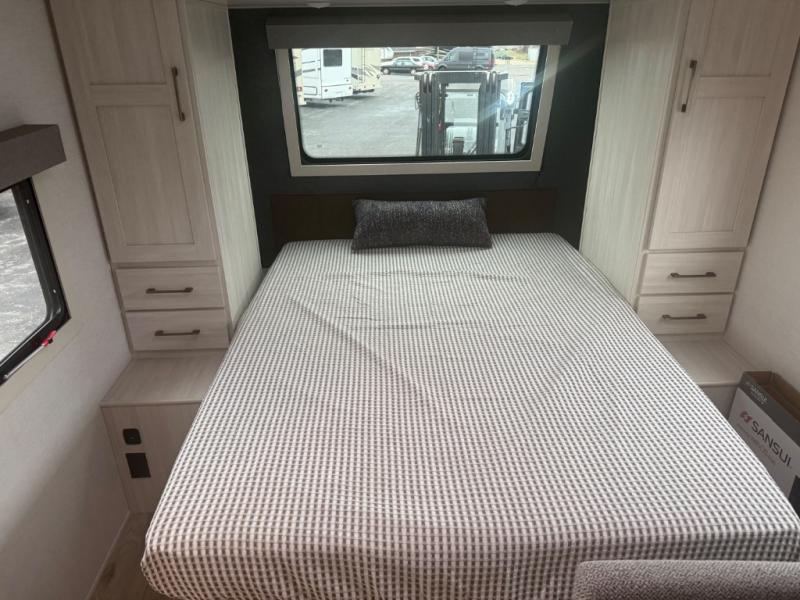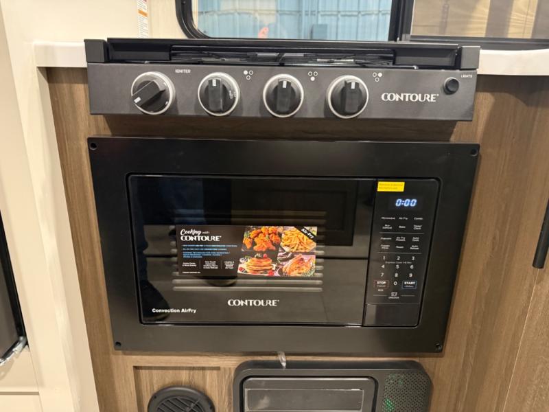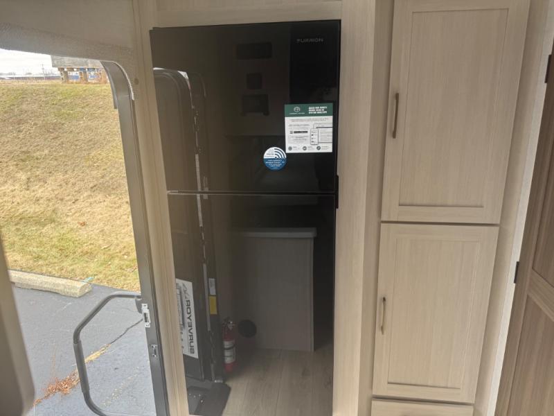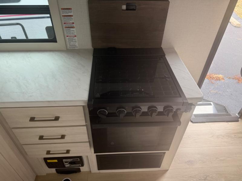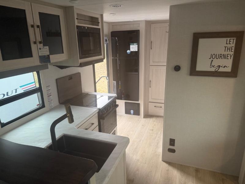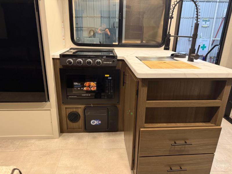 You're going to love every minute spent in this 25' travel trailer! The counter with stools will be the perfect place to enjoy your morning coffee at, plus there is a dinette slide for more seating space. You will get a great night's rest on the queen bed in the front bedroom, and the two wardrobes allow you to keep your clothes tidy. Further customize this trailer by adding the theater seating option or tri-fold sofa option in place of the dinette, and you'll enjoy the standard HD TV for late-night movies!