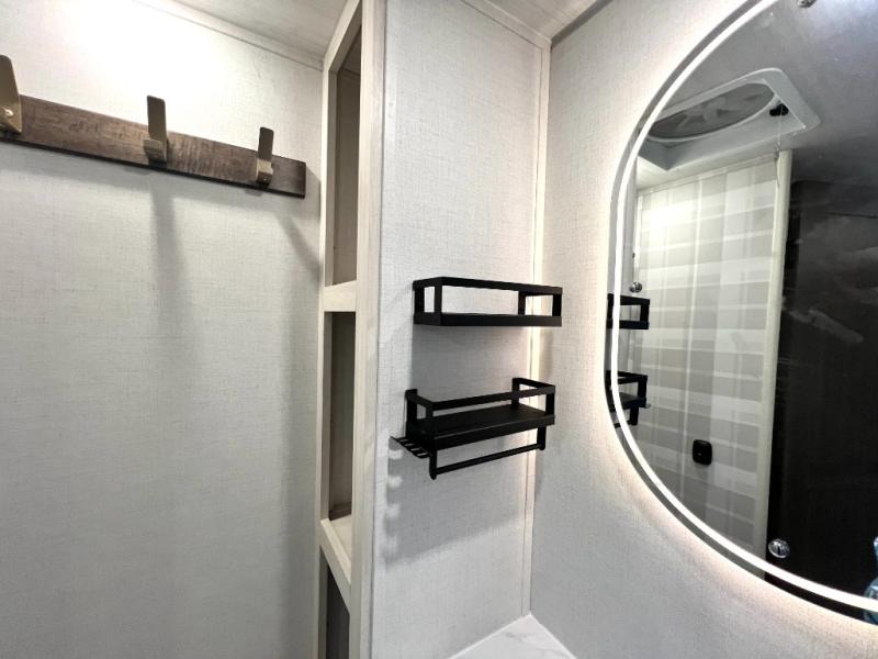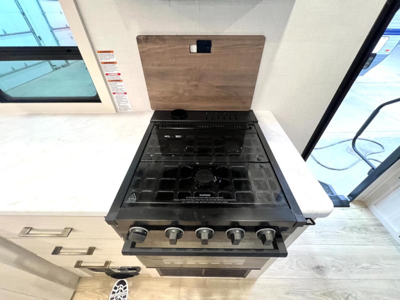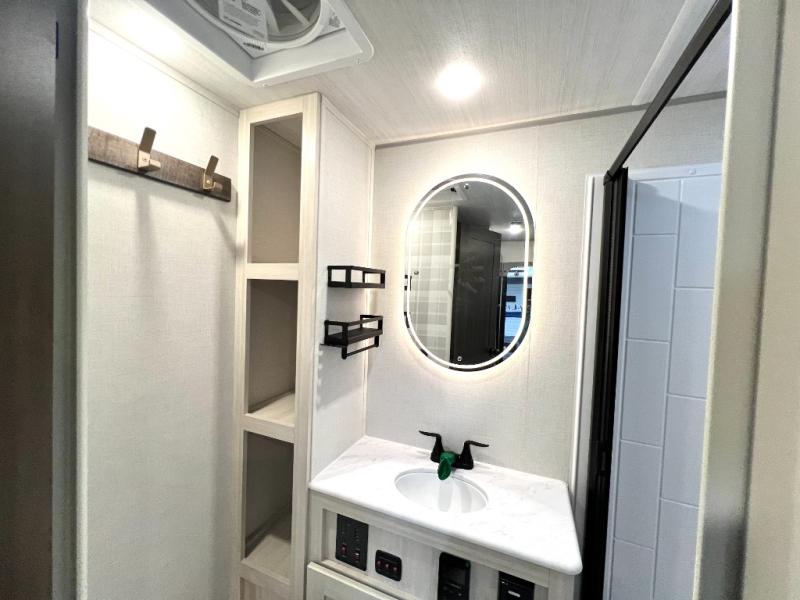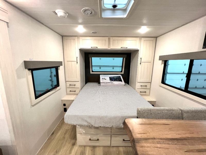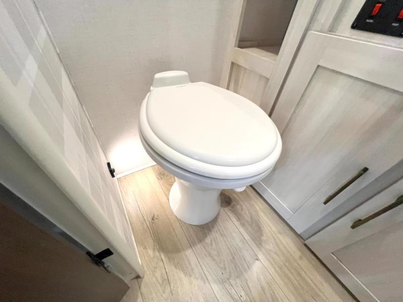 You're going to love every minute spent in this 25' travel trailer! The counter with stools will be the perfect place to enjoy your morning coffee at, plus there is a dinette slide for more seating space. You will get a great night's rest on the queen bed in the front bedroom, and the two wardrobes allow you to keep your clothes tidy. Further customize this trailer by adding the theater seating option or tri-fold sofa option in place of the dinette, and you'll enjoy the standard HD TV for late-night movies!