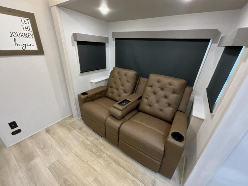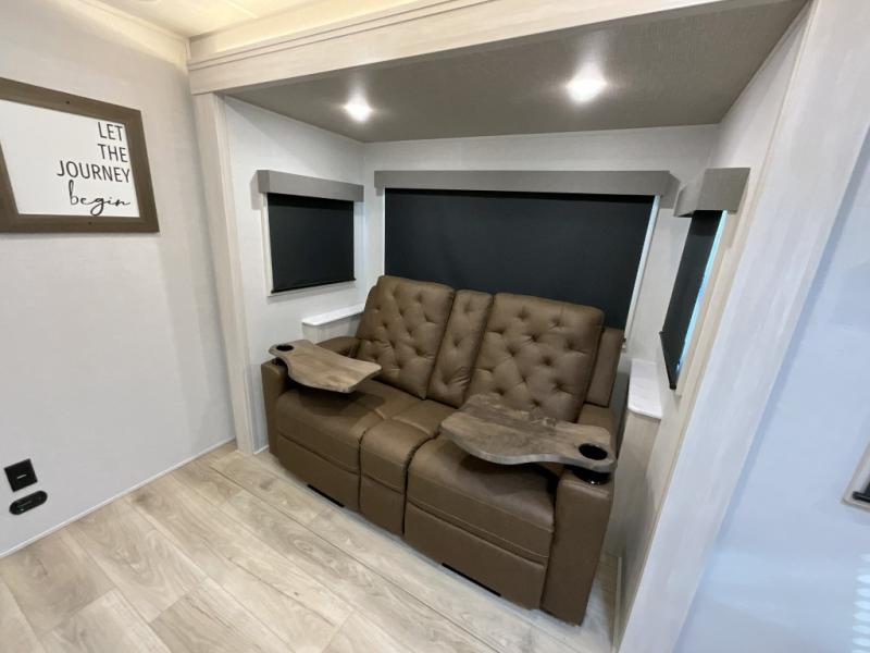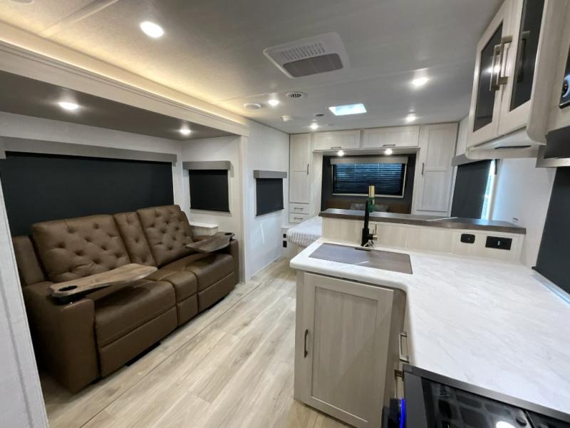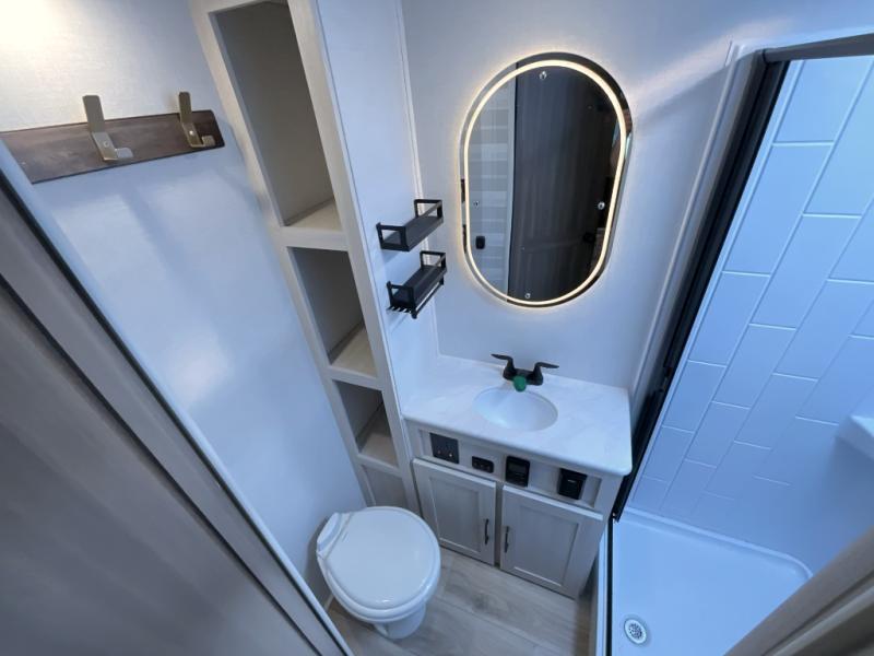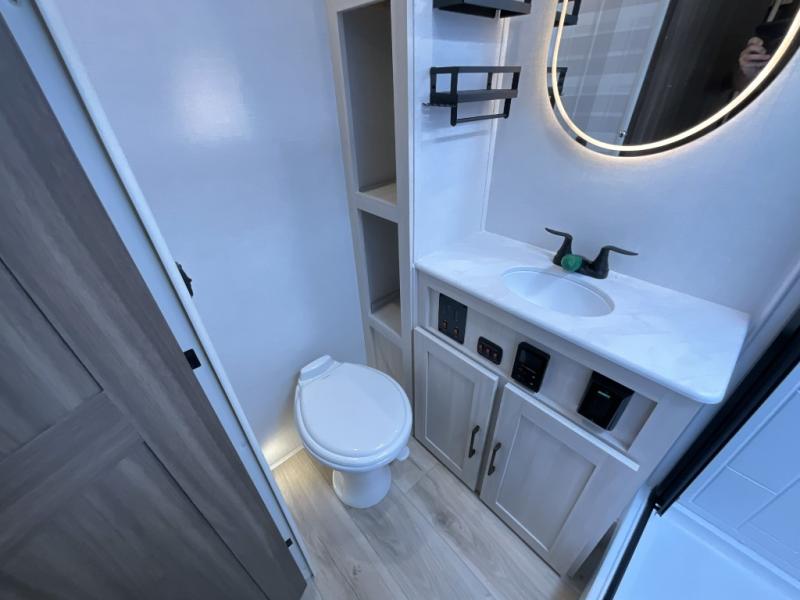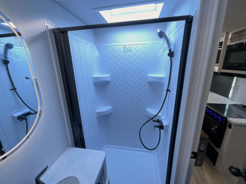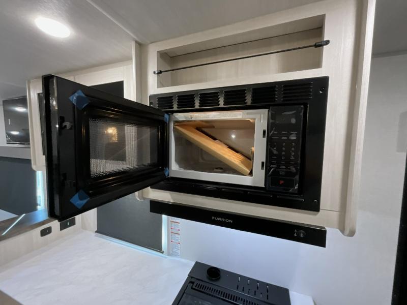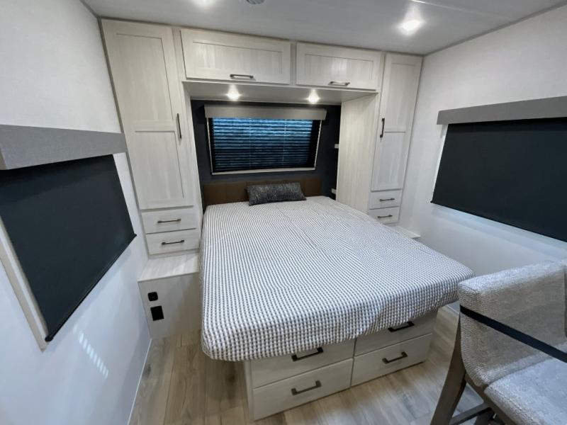 You're going to love every minute spent in this 25' travel trailer! The counter with stools will be the perfect place to enjoy your morning coffee at, plus there is a dinette slide for more seating space. You will get a great night's rest on the queen bed in the front bedroom, and the two wardrobes allow you to keep your clothes tidy. Further customize this trailer by adding the theater seating option or tri-fold sofa option in place of the dinette, and you'll enjoy the standard HD TV for late-night movies!