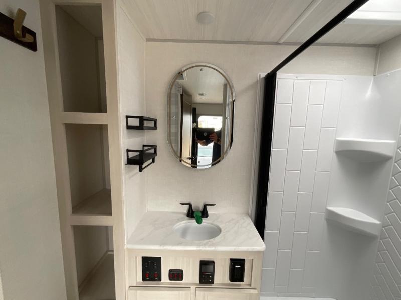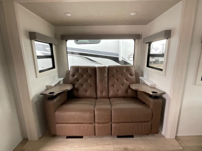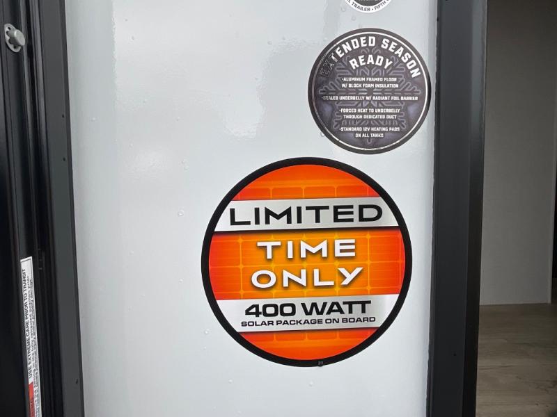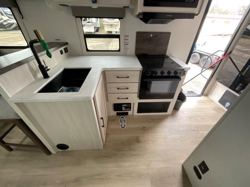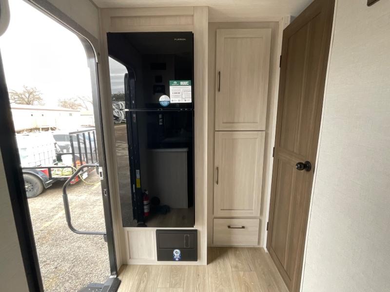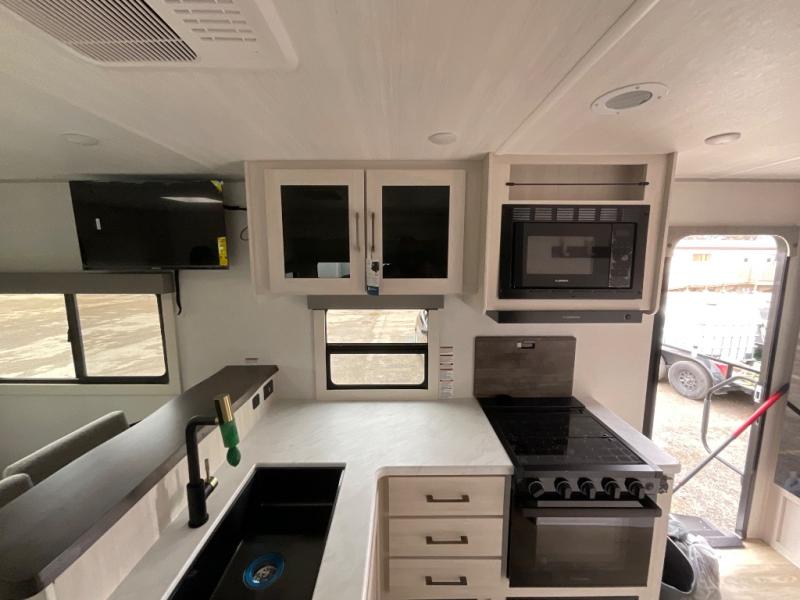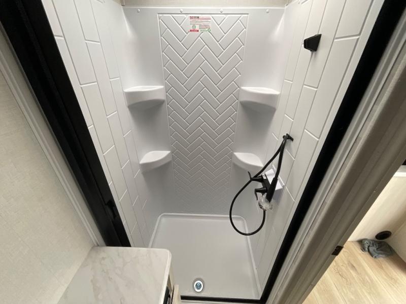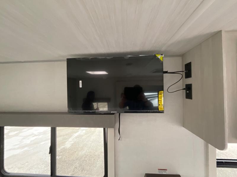 You're going to love every minute spent in this 25' travel trailer! The counter with stools will be the perfect place to enjoy your morning coffee at, plus there is a dinette slide for more seating space. You will get a great night's rest on the queen bed in the front bedroom, and the two wardrobes allow you to keep your clothes tidy. Further customize this trailer by adding the theater seating option or tri-fold sofa option in place of the dinette, and you'll enjoy the standard HD TV for late-night movies!