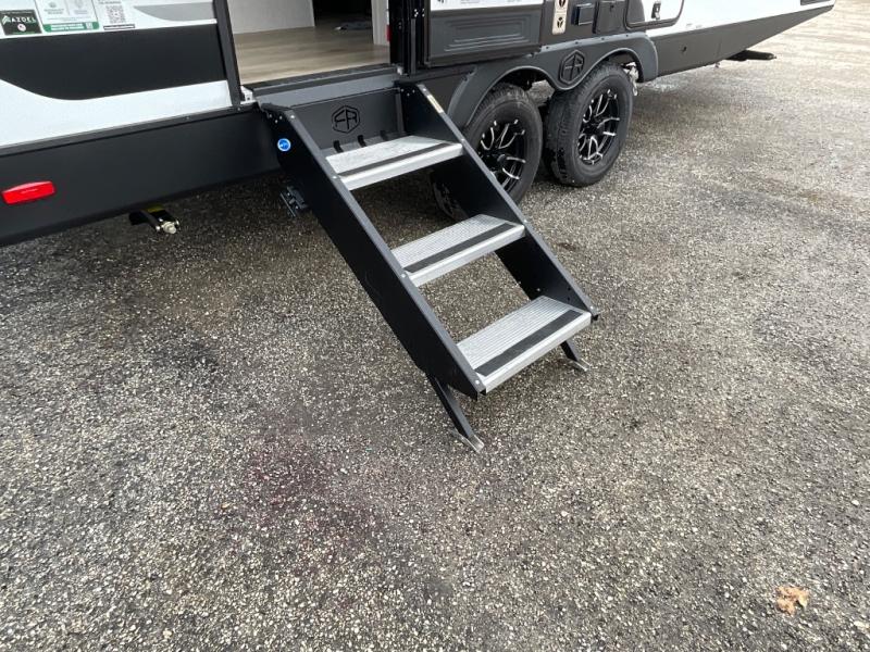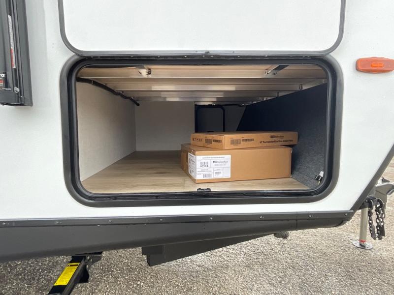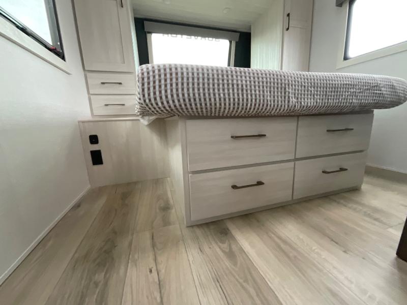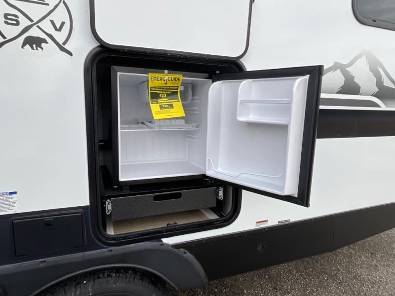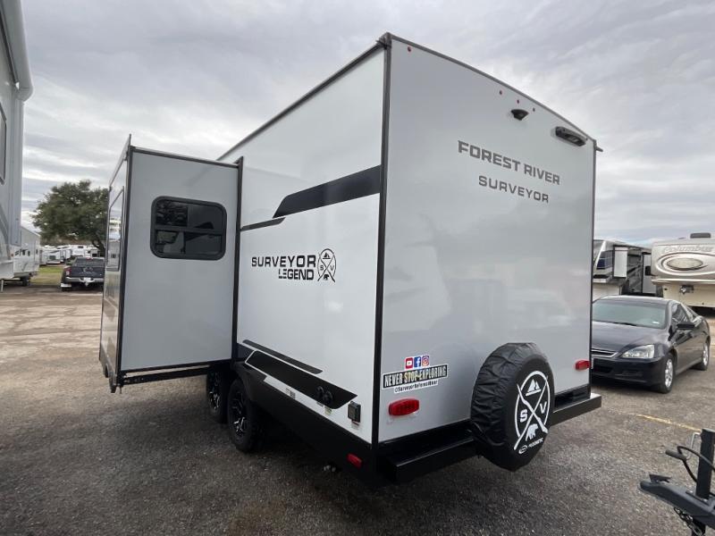 With any Surveyor Legend travel trailer by Forest River you will enjoy quality craftsmanship, convenient amenities, and at-home comforts. The Azdel composite walls provide a longer-lasting trailer, and the power tongue jack with hitch light makes getting back on the road quick and easy. There are also Goodyear® tires and a tire pressure monitoring system (TPMS) for more confident, hassle-free towing. Each model is built with thoughtful details like slam-latch exterior baggage doors and an automotive-style tinted front windshield that gives the front cap a sleek look while letting in natural light. You’ll appreciate camping with a tankless water heater for endless hot showers, a 2" rear accessory hitch to bring bikes or extra gear along, plus a central vacuum system that helps keep your easy-to-clean interior looking fresh.
