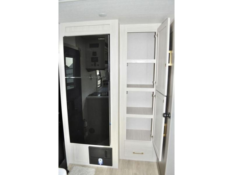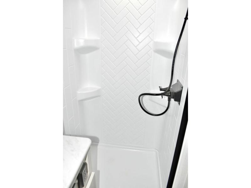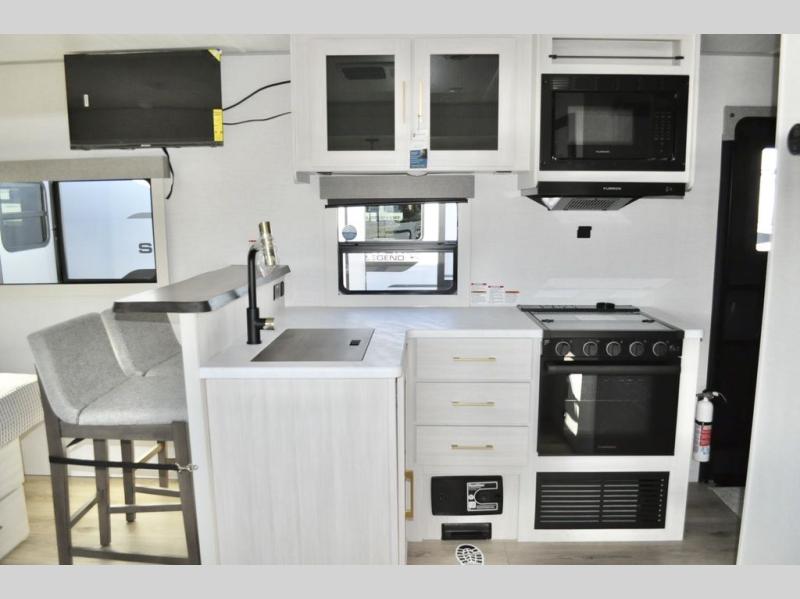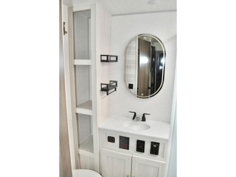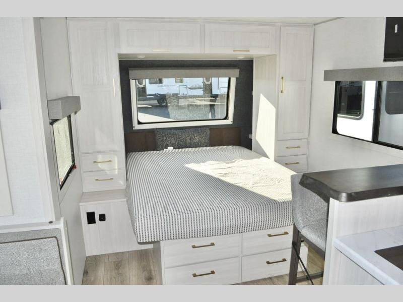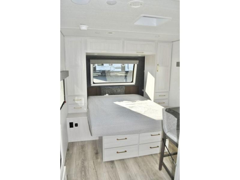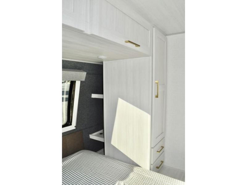 You're going to love every minute spent in this 25' travel trailer! The counter with stools will be the perfect place to enjoy your morning coffee at, plus there is a dinette slide for more seating space. You will get a great night's rest on the queen bed in the front bedroom, and the two wardrobes allow you to keep your clothes tidy. Further customize this trailer by adding the theater seating option or tri-fold sofa option in place of the dinette, and you'll enjoy the standard HD TV for late-night movies!