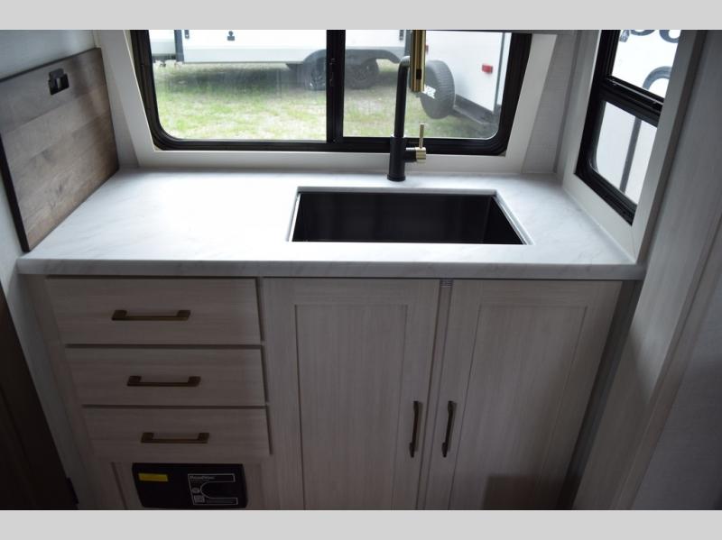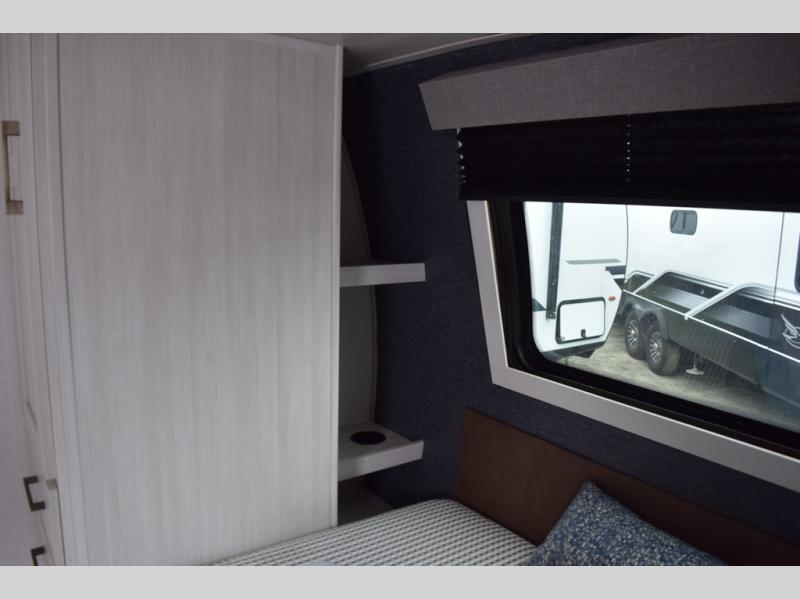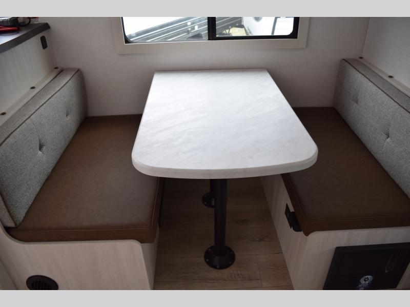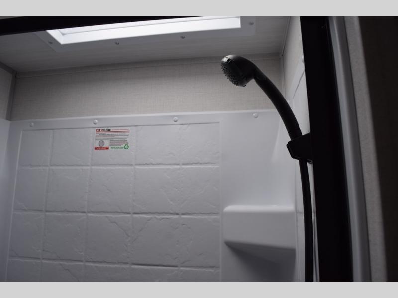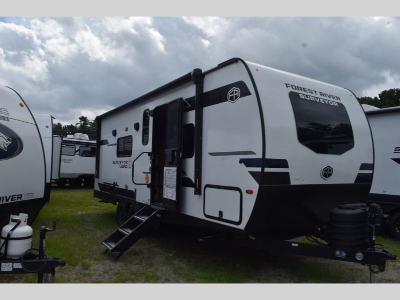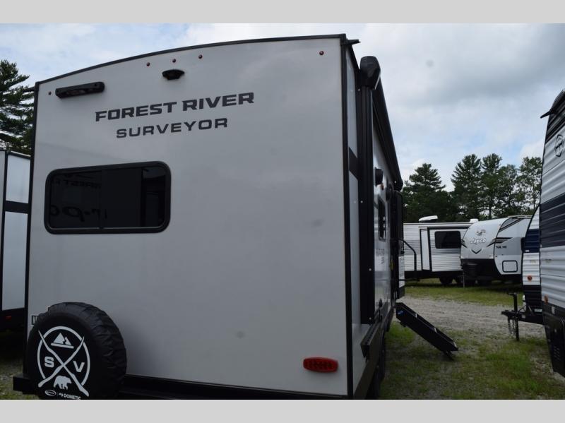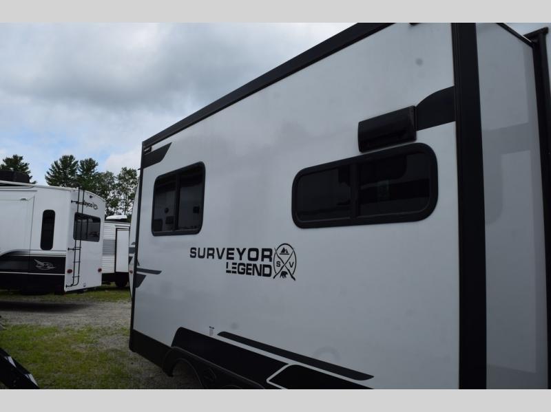 With any Surveyor Legend travel trailer by Forest River you will enjoy quality craftsmanship, convenient amenities, and at-home comforts. The Azdel composite walls provide a longer-lasting trailer, and the power tongue jack with a hitch light will get you back on the road in no-time. There are also Goodyear tires and a tire pressure monitoring system for hassle-free towing. Each model includes the Surveyor Legend Package that comes standard with oversized dinette storage access doors, front slam latch baggage doors, plus an automotive style tinted front windshield. You'll appreciate camping with a tankless water heater for endless hot showers, a 2" accessory hitch to bring bikes along, plus carpet-free interiors and a central vacuum system for easy clean up.