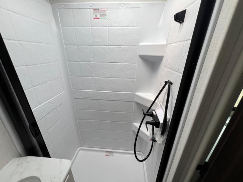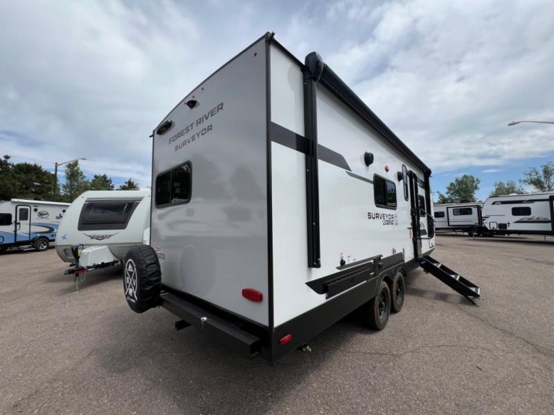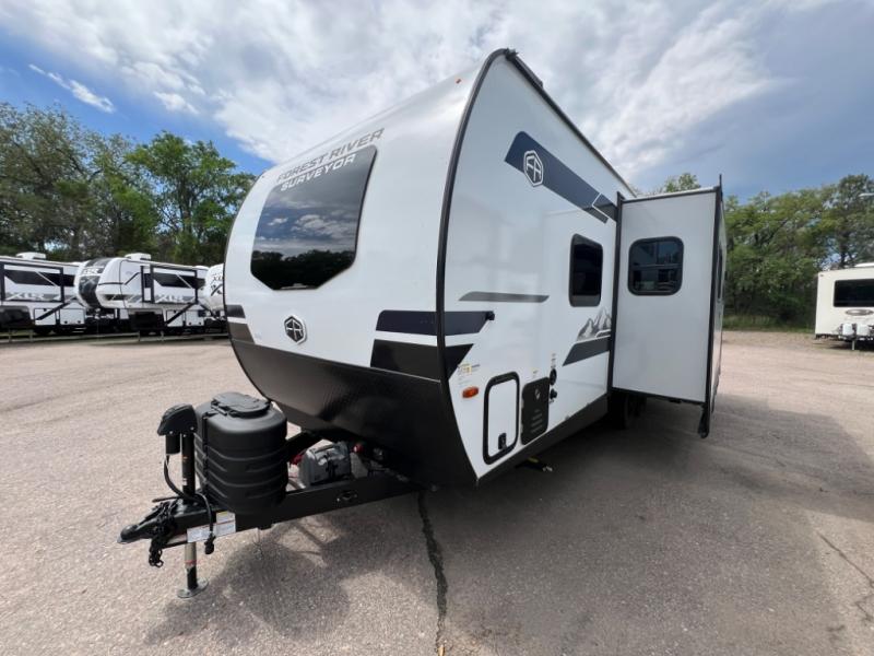 With any Surveyor Legend travel trailer by Forest River you will enjoy quality craftsmanship, convenient amenities, and at-home comforts. The Azdel composite walls provide a longer-lasting trailer, and the power tongue jack with a hitch light will get you back on the road in no-time. There are also Goodyear tires and a tire pressure monitoring system for hassle-free towing. Each model includes the Surveyor Legend Package that comes standard with oversized dinette storage access doors, front slam latch baggage doors, plus an automotive style tinted front windshield. You'll appreciate camping with a tankless water heater for endless hot showers, a 2" accessory hitch to bring bikes along, plus carpet-free interiors and a central vacuum system for easy clean up.