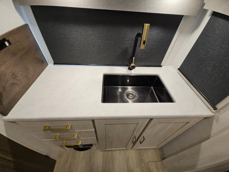 With any Surveyor Legend travel trailer by Forest River you will enjoy quality craftsmanship, convenient amenities, and at-home comforts. The Azdel composite walls provide a longer-lasting trailer, and the power tongue jack with a hitch light will get you back on the road in no-time. There are also Goodyear tires and a tire pressure monitoring system for hassle-free towing. Each model includes the Surveyor Legend Package that comes standard with oversized dinette storage access doors, front slam latch baggage doors, plus an automotive style tinted front windshield. You'll appreciate camping with a tankless water heater for endless hot showers, a 2" accessory hitch to bring bikes along, plus carpet-free interiors and a central vacuum system for easy clean up.