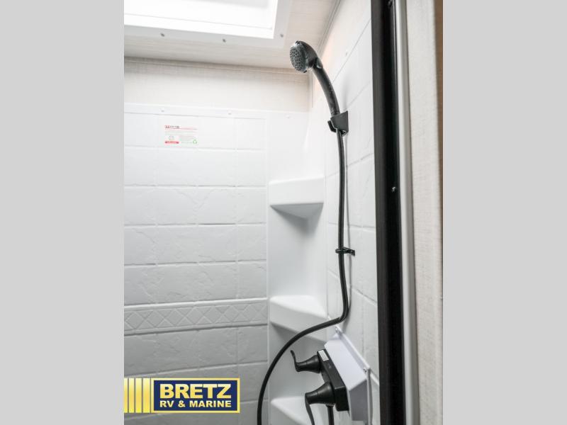 With any Surveyor Legend travel trailer by Forest River you will enjoy quality craftsmanship, convenient amenities, and at-home comforts. The Azdel composite walls provide a longer-lasting trailer, and the power tongue jack with a hitch light will get you back on the road in no-time. There are also Goodyear tires and a tire pressure monitoring system for hassle-free towing. Each model includes the Surveyor Legend Package that comes standard with oversized dinette storage access doors, front slam latch baggage doors, plus an automotive style tinted front windshield. You'll appreciate camping with a tankless water heater for endless hot showers, a 2" accessory hitch to bring bikes along, plus carpet-free interiors and a central vacuum system for easy clean up.