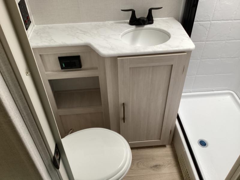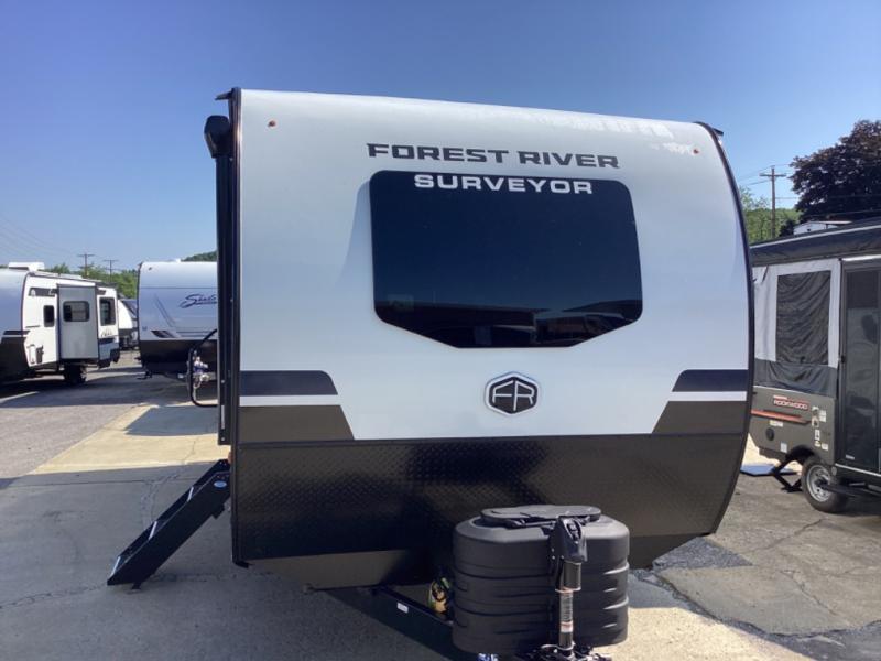 With any Surveyor Legend travel trailer by Forest River you will enjoy quality craftsmanship, convenient amenities, and at-home comforts. The Azdel composite walls provide a longer-lasting trailer, and the power tongue jack with a hitch light will get you back on the road in no-time. There are also Goodyear tires and a tire pressure monitoring system for hassle-free towing. Each model includes the Surveyor Legend Package that comes standard with oversized dinette storage access doors, front slam latch baggage doors, plus an automotive style tinted front windshield. You'll appreciate camping with a tankless water heater for endless hot showers, a 2" accessory hitch to bring bikes along, plus carpet-free interiors and a central vacuum system for easy clean up.