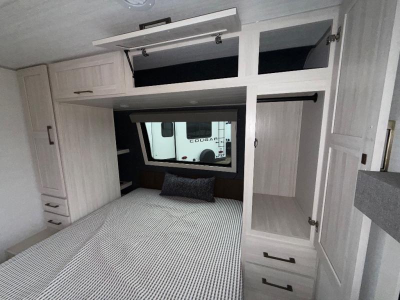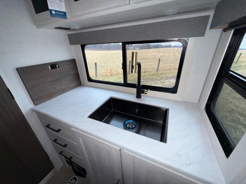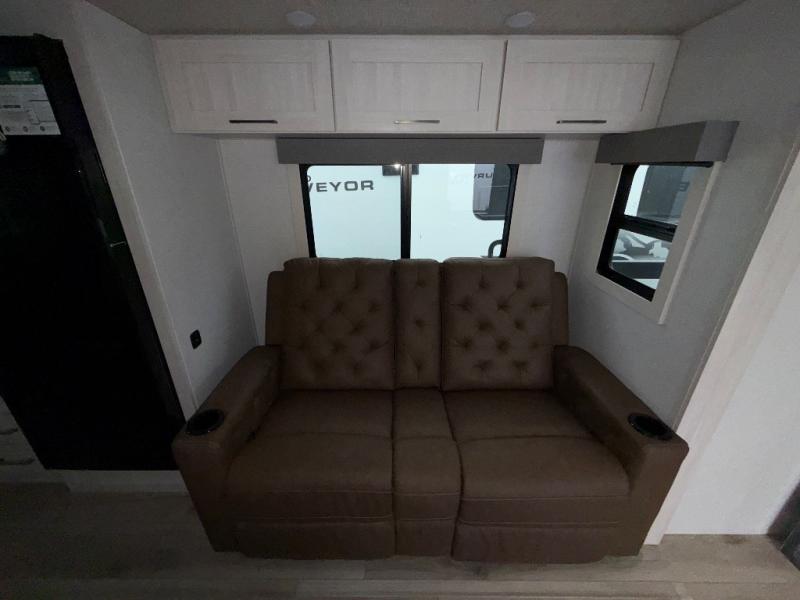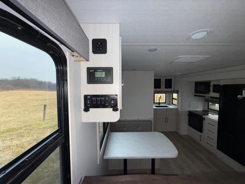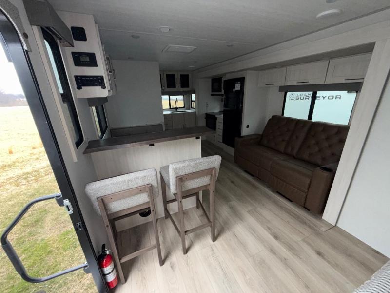 With any Surveyor Legend travel trailer by Forest River you will enjoy quality craftsmanship, convenient amenities, and at-home comforts. The Azdel composite walls provide a longer-lasting trailer, and the power tongue jack with a hitch light will get you back on the road in no-time. There are also Goodyear tires and a tire pressure monitoring system for hassle-free towing. Each model includes the Surveyor Legend Package that comes standard with oversized dinette storage access doors, front slam latch baggage doors, plus an automotive style tinted front windshield. You'll appreciate camping with a tankless water heater for endless hot showers, a 2" accessory hitch to bring bikes along, plus carpet-free interiors and a central vacuum system for easy clean up.
