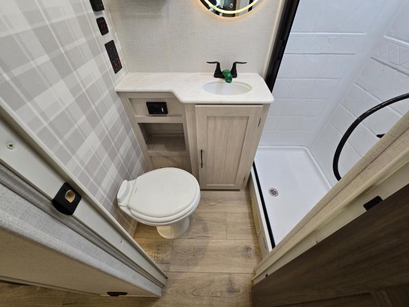 With any Surveyor Legend travel trailer by Forest River you will enjoy quality craftsmanship, convenient amenities, and at-home comforts. The Azdel composite walls provide a longer-lasting trailer, and the power tongue jack with hitch light makes getting back on the road quick and easy. There are also Goodyear® tires and a tire pressure monitoring system (TPMS) for more confident, hassle-free towing. Each model is built with thoughtful details like slam-latch exterior baggage doors and an automotive-style tinted front windshield that gives the front cap a sleek look while letting in natural light. You’ll appreciate camping with a tankless water heater for endless hot showers, a 2" rear accessory hitch to bring bikes or extra gear along, plus a central vacuum system that helps keep your easy-to-clean interior looking fresh.