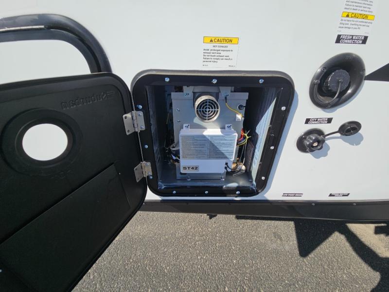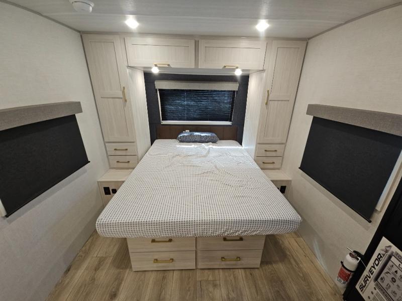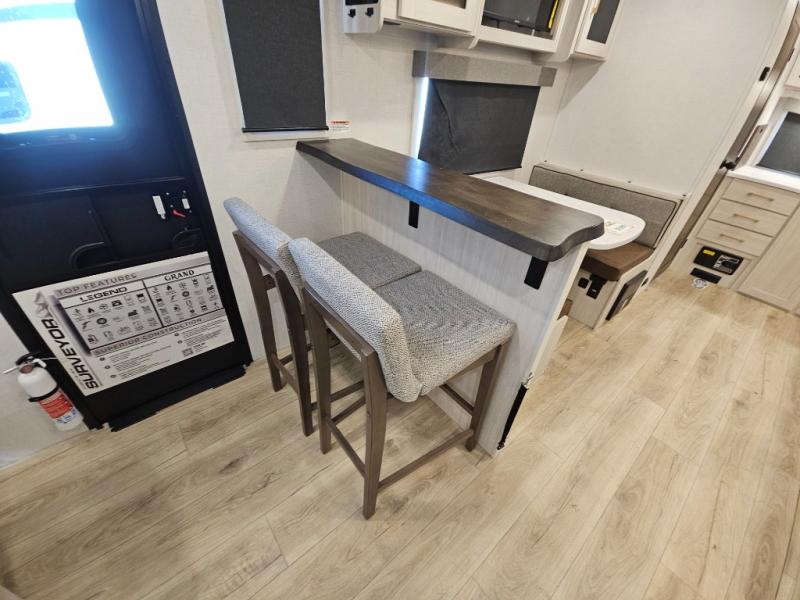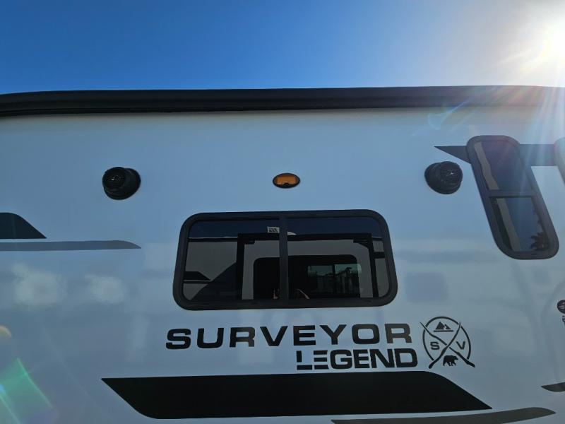 With any Surveyor Legend travel trailer by Forest River you will enjoy quality craftsmanship, convenient amenities, and at-home comforts. The Azdel composite walls provide a longer-lasting trailer, and the power tongue jack with hitch light makes getting back on the road quick and easy. There are also Goodyear® tires and a tire pressure monitoring system (TPMS) for more confident, hassle-free towing. Each model is built with thoughtful details like slam-latch exterior baggage doors and an automotive-style tinted front windshield that gives the front cap a sleek look while letting in natural light. You’ll appreciate camping with a tankless water heater for endless hot showers, a 2" rear accessory hitch to bring bikes or extra gear along, plus a central vacuum system that helps keep your easy-to-clean interior looking fresh.