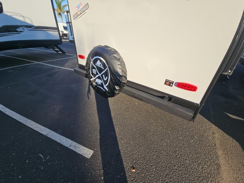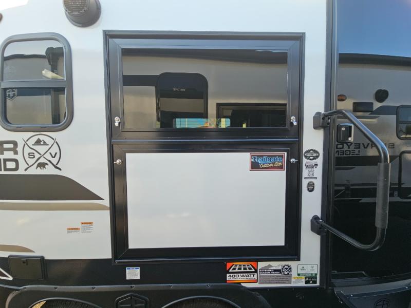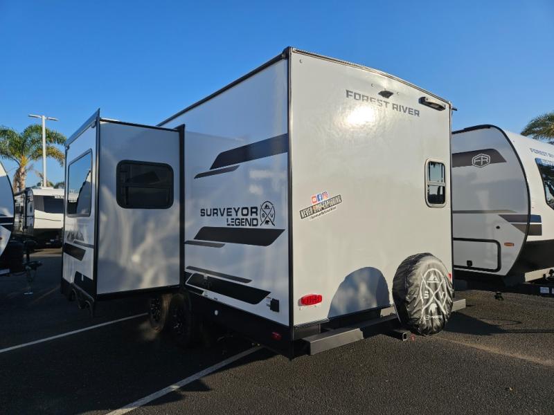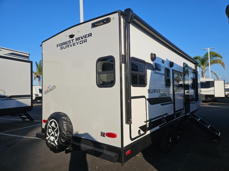 With any Surveyor Legend travel trailer by Forest River you will enjoy quality craftsmanship, convenient amenities, and at-home comforts. The Azdel composite walls provide a longer-lasting trailer, and the power tongue jack with hitch light makes getting back on the road quick and easy. There are also Goodyear® tires and a tire pressure monitoring system (TPMS) for more confident, hassle-free towing. Each model is built with thoughtful details like slam-latch exterior baggage doors and an automotive-style tinted front windshield that gives the front cap a sleek look while letting in natural light. You’ll appreciate camping with a tankless water heater for endless hot showers, a 2" rear accessory hitch to bring bikes or extra gear along, plus a central vacuum system that helps keep your easy-to-clean interior looking fresh.