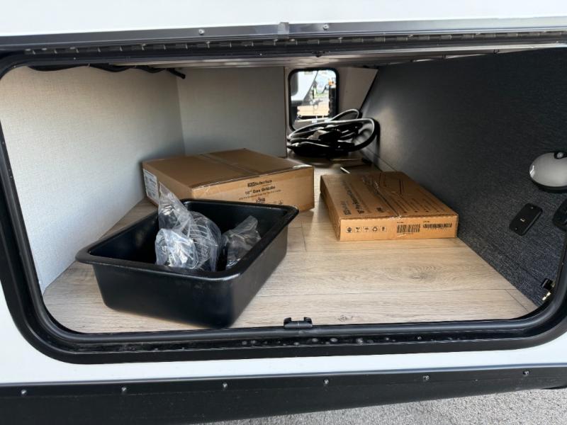 With any Surveyor Legend travel trailer by Forest River you will enjoy quality craftsmanship, convenient amenities, and at-home comforts. The Azdel composite walls provide a longer-lasting trailer, and the power tongue jack with a hitch light will get you back on the road in no-time. There are also Goodyear tires and a tire pressure monitoring system for hassle-free towing. Each model includes the Surveyor Legend Package that comes standard with oversized dinette storage access doors, front slam latch baggage doors, plus an automotive style tinted front windshield. You'll appreciate camping with a tankless water heater for endless hot showers, a 2" accessory hitch to bring bikes along, plus carpet-free interiors and a central vacuum system for easy clean up.