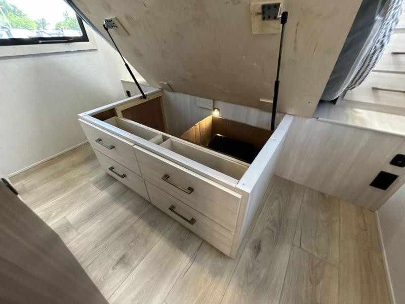 With any Surveyor Legend travel trailer by Forest River you will enjoy quality craftsmanship, convenient amenities, and at-home comforts. The Azdel composite walls provide a longer-lasting trailer, and the power tongue jack with a hitch light will get you back on the road in no-time. There are also Goodyear tires and a tire pressure monitoring system for hassle-free towing. Each model includes the Surveyor Legend Package that comes standard with oversized dinette storage access doors, front slam latch baggage doors, plus an automotive style tinted front windshield. You'll appreciate camping with a tankless water heater for endless hot showers, a 2" accessory hitch to bring bikes along, plus carpet-free interiors and a central vacuum system for easy clean up.