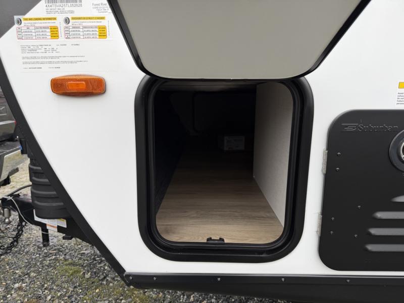 With any Surveyor Legend travel trailer by Forest River you will enjoy quality craftsmanship, convenient amenities, and at-home comforts. The Azdel composite walls provide a longer-lasting trailer, and the power tongue jack with a hitch light will get you back on the road in no-time. There are also Goodyear tires and a tire pressure monitoring system for hassle-free towing. Each model includes the Surveyor Legend Package that comes standard with oversized dinette storage access doors, front slam latch baggage doors, plus an automotive style tinted front windshield. You'll appreciate camping with a tankless water heater for endless hot showers, a 2" accessory hitch to bring bikes along, plus carpet-free interiors and a central vacuum system for easy clean up.