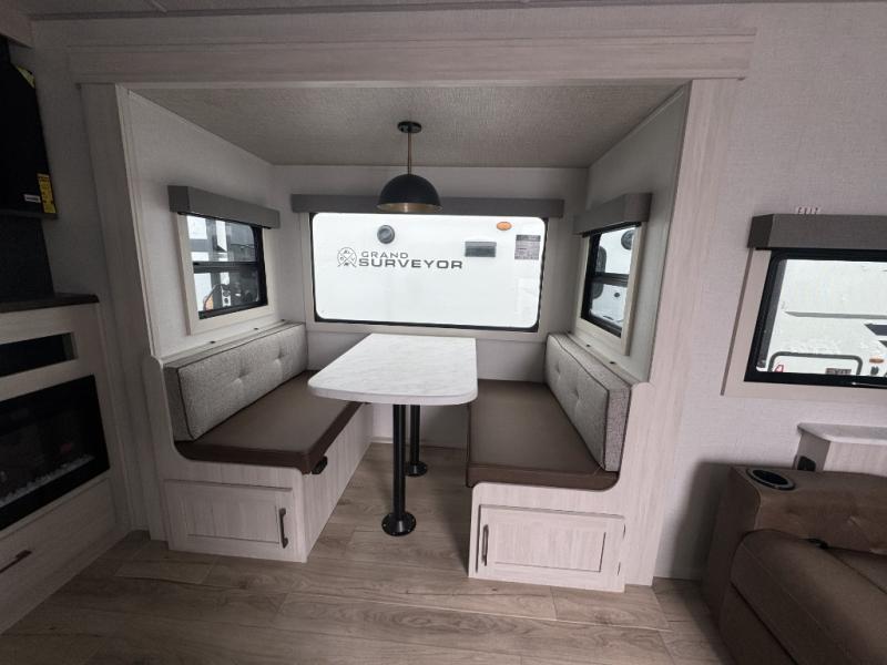 With any Surveyor Legend travel trailer by Forest River you will enjoy quality craftsmanship, convenient amenities, and at-home comforts. The Azdel composite walls provide a longer-lasting trailer, and the power tongue jack with a hitch light will get you back on the road in no-time. There are also Goodyear tires and a tire pressure monitoring system for hassle-free towing. Each model includes the Surveyor Legend Package that comes standard with oversized dinette storage access doors, front slam latch baggage doors, plus an automotive style tinted front windshield. You'll appreciate camping with a tankless water heater for endless hot showers, a 2" accessory hitch to bring bikes along, plus carpet-free interiors and a central vacuum system for easy clean up.