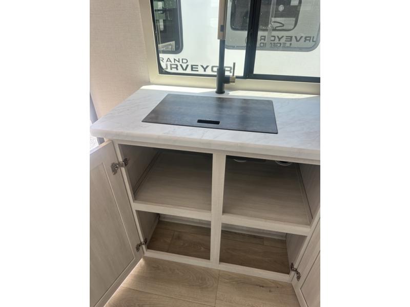 With any Surveyor Legend travel trailer by Forest River you will enjoy quality craftsmanship, convenient amenities, and at-home comforts. The Azdel composite walls provide a longer-lasting trailer, and the power tongue jack with a hitch light will get you back on the road in no-time. There are also Goodyear tires and a tire pressure monitoring system for hassle-free towing. Each model includes the Surveyor Legend Package that comes standard with oversized dinette storage access doors, front slam latch baggage doors, plus an automotive style tinted front windshield. You'll appreciate camping with a tankless water heater for endless hot showers, a 2" accessory hitch to bring bikes along, plus carpet-free interiors and a central vacuum system for easy clean up.