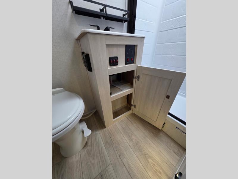 With any Surveyor Legend travel trailer by Forest River you will enjoy quality craftsmanship, convenient amenities, and at-home comforts. The Azdel composite walls provide a longer-lasting trailer, and the power tongue jack with a hitch light will get you back on the road in no-time. There are also Goodyear tires and a tire pressure monitoring system for hassle-free towing. Each model includes the Surveyor Legend Package that comes standard with oversized dinette storage access doors, front slam latch baggage doors, plus an automotive style tinted front windshield. You'll appreciate camping with a tankless water heater for endless hot showers, a 2" accessory hitch to bring bikes along, plus carpet-free interiors and a central vacuum system for easy clean up.