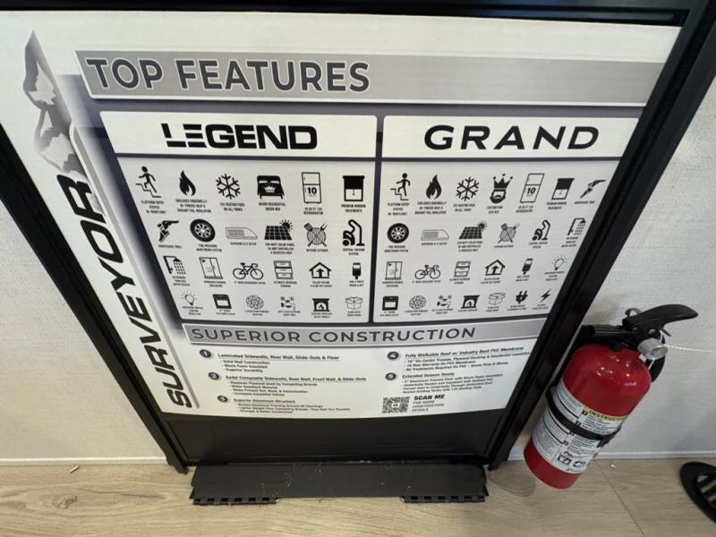 With any Surveyor Legend travel trailer by Forest River you will enjoy quality craftsmanship, convenient amenities, and at-home comforts. The Azdel composite walls provide a longer-lasting trailer, and the power tongue jack with a hitch light will get you back on the road in no-time. There are also Goodyear tires and a tire pressure monitoring system for hassle-free towing. Each model includes the Surveyor Legend Package that comes standard with oversized dinette storage access doors, front slam latch baggage doors, plus an automotive style tinted front windshield. You'll appreciate camping with a tankless water heater for endless hot showers, a 2" accessory hitch to bring bikes along, plus carpet-free interiors and a central vacuum system for easy clean up.