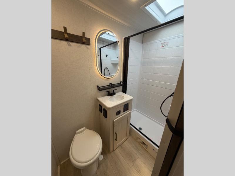 With any Surveyor Legend travel trailer by Forest River you will enjoy quality craftsmanship, convenient amenities, and at-home comforts. The Azdel composite walls provide a longer-lasting trailer, and the power tongue jack with a hitch light will get you back on the road in no-time. There are also Goodyear tires and a tire pressure monitoring system for hassle-free towing. Each model includes the Surveyor Legend Package that comes standard with oversized dinette storage access doors, front slam latch baggage doors, plus an automotive style tinted front windshield. You'll appreciate camping with a tankless water heater for endless hot showers, a 2" accessory hitch to bring bikes along, plus carpet-free interiors and a central vacuum system for easy clean up.