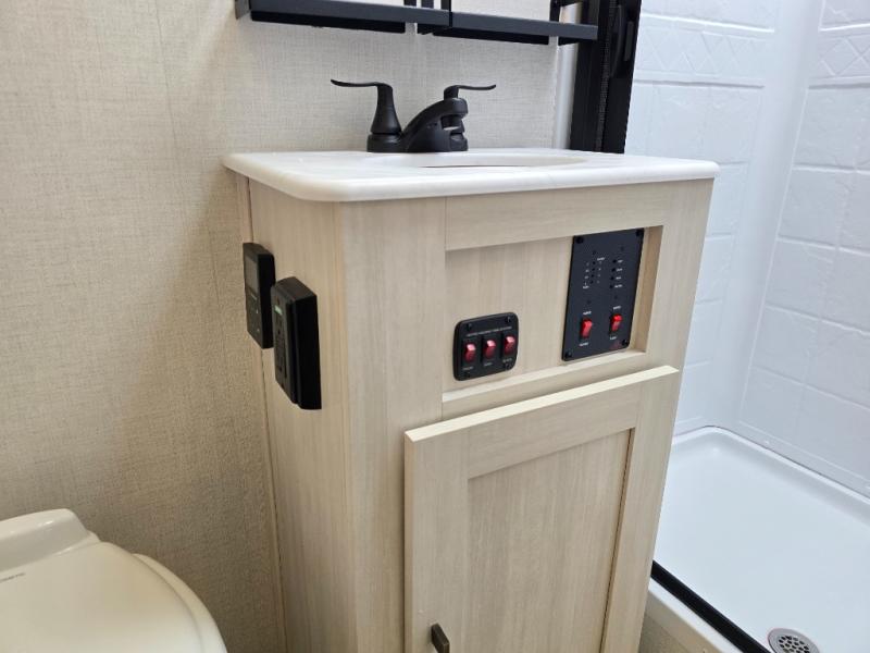 With any Surveyor Legend travel trailer by Forest River you will enjoy quality craftsmanship, convenient amenities, and at-home comforts. The Azdel composite walls provide a longer-lasting trailer, and the power tongue jack with a hitch light will get you back on the road in no-time. There are also Goodyear tires and a tire pressure monitoring system for hassle-free towing. Each model includes the Surveyor Legend Package that comes standard with oversized dinette storage access doors, front slam latch baggage doors, plus an automotive style tinted front windshield. You'll appreciate camping with a tankless water heater for endless hot showers, a 2" accessory hitch to bring bikes along, plus carpet-free interiors and a central vacuum system for easy clean up.