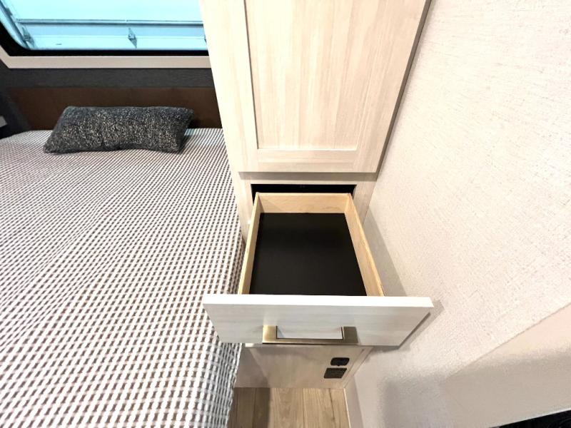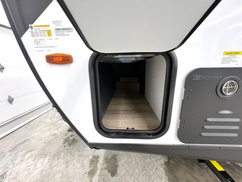 With any Surveyor Legend travel trailer by Forest River you will enjoy quality craftsmanship, convenient amenities, and at-home comforts. The Azdel composite walls provide a longer-lasting trailer, and the power tongue jack with hitch light makes getting back on the road quick and easy. There are also Goodyear® tires and a tire pressure monitoring system (TPMS) for more confident, hassle-free towing. Each model is built with thoughtful details like slam-latch exterior baggage doors and an automotive-style tinted front windshield that gives the front cap a sleek look while letting in natural light. You’ll appreciate camping with a tankless water heater for endless hot showers, a 2" rear accessory hitch to bring bikes or extra gear along, plus a central vacuum system that helps keep your easy-to-clean interior looking fresh.