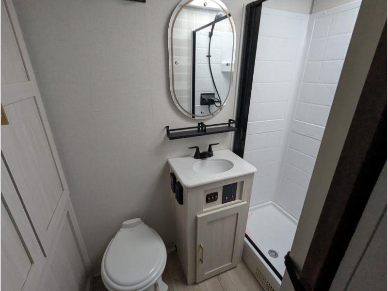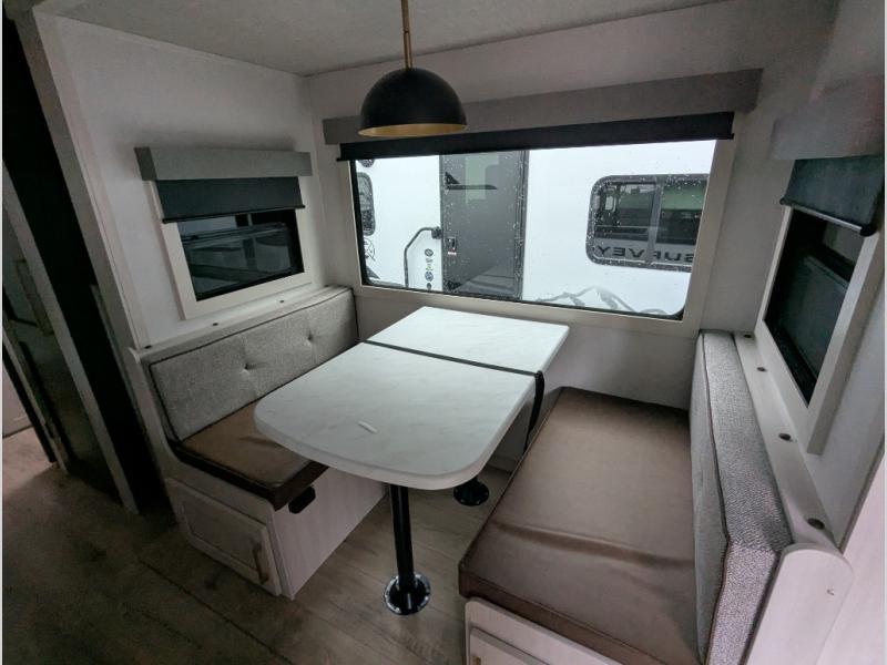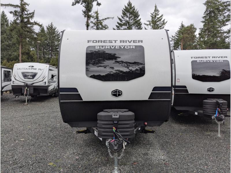 With any Surveyor Legend travel trailer by Forest River you will enjoy quality craftsmanship, convenient amenities, and at-home comforts. The Azdel composite walls provide a longer-lasting trailer, and the power tongue jack with a hitch light will get you back on the road in no-time. There are also Goodyear tires and a tire pressure monitoring system for hassle-free towing. Each model includes the Surveyor Legend Package that comes standard with oversized dinette storage access doors, front slam latch baggage doors, plus an automotive style tinted front windshield. You'll appreciate camping with a tankless water heater for endless hot showers, a 2" accessory hitch to bring bikes along, plus carpet-free interiors and a central vacuum system for easy clean up.